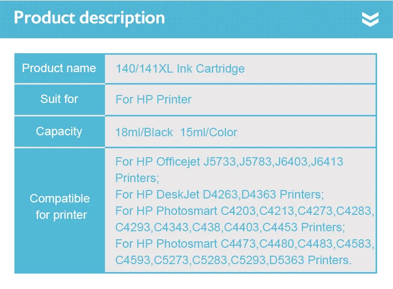 1 шт. X Совместимость с чернильным картриджем HP 140XL черного цвета.
