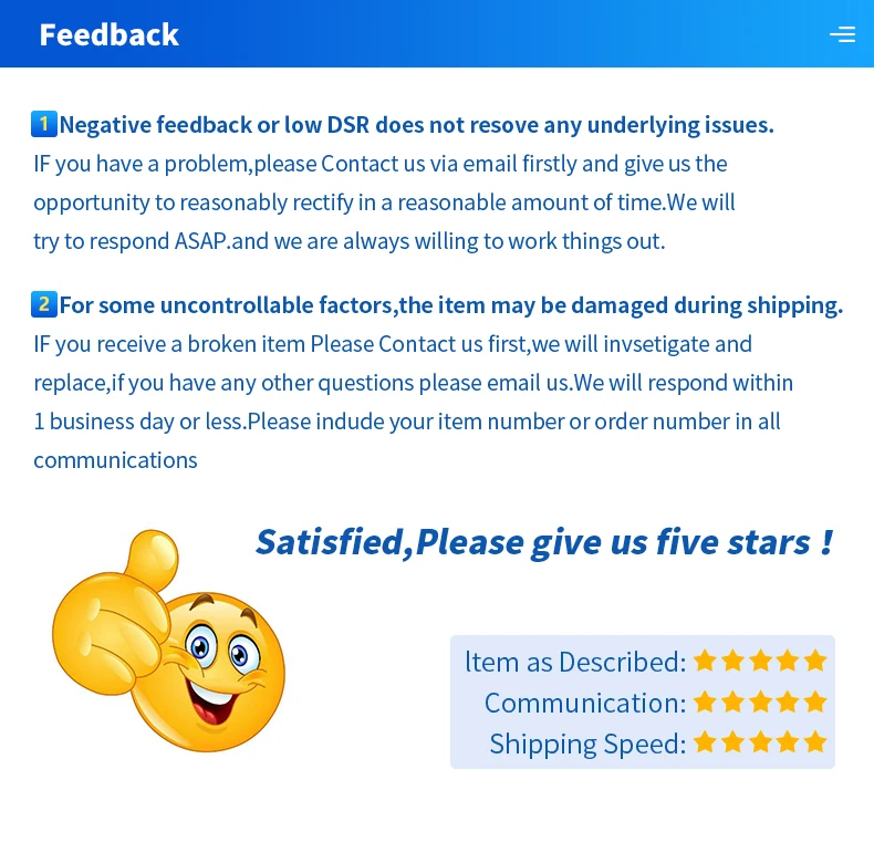 Service Refund or replace for any quality issue