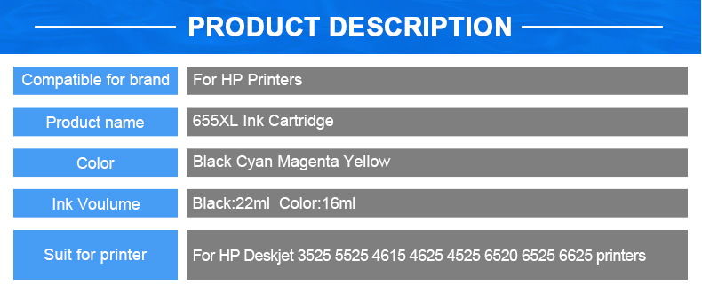 Совместимая Замена HINICOLE 4 шт. Для HP 655 для картриджа с чернилами HP655