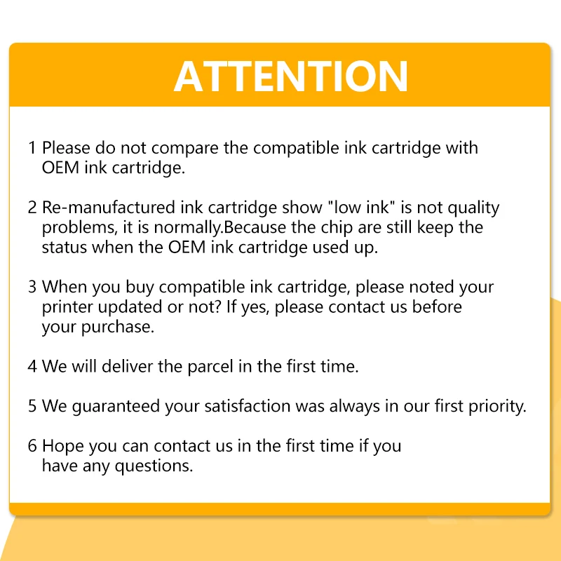 Пожалуйста, в соответствии с моделью оригинального чернильного картриджа для покупки (ранее использованная модель картриджа), не напрямую в соответствии с моделью принтера, так как одна и та же модель принтера, в разных регионах могут использоваться различные модели картриджей. Если у вас есть какие-либо сомнения, пожалуйста, свяжитесь с нами для получения консультации вовремя. Спасибо!