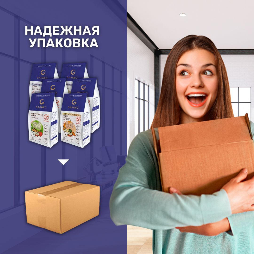 Каша без глютена Гарнец Garnec Крупка манка ассорти 6шт по 200г