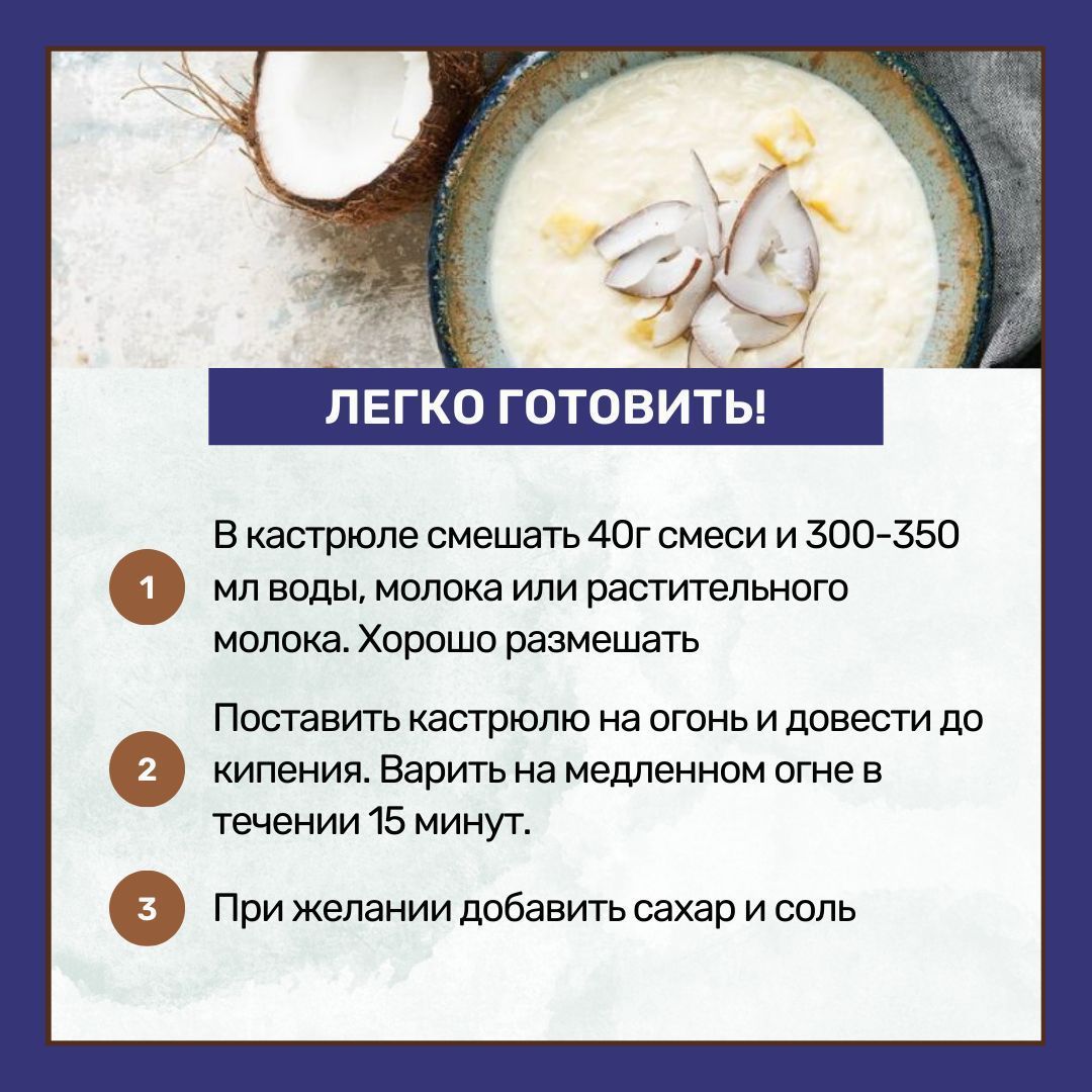 Рисовая с клубникой: крупка рисовая, клубника сушеная резаная, соль пищевая. Рисовая с бананом: крупка рисовая, банан сушеный рисовый, соль пищевая. Рисовая с кокосом: крупка рисовая, сахар кокосовый, молоко кокосовое сухое, соль пищевая. Кукурузная с кокосом: крупка кукурузная, сахар кокосовый, молоко кокосовое сухое, соль пищевая. Кукурузная с яблоком: крупка кукурузная, яблоко сушеное резаное, соль пищевая. Пшено-рисовая: мука пшенная, крупка рисовая, яблоко сушеное резаное, морковь сушеная дробленая, соль пищевая.