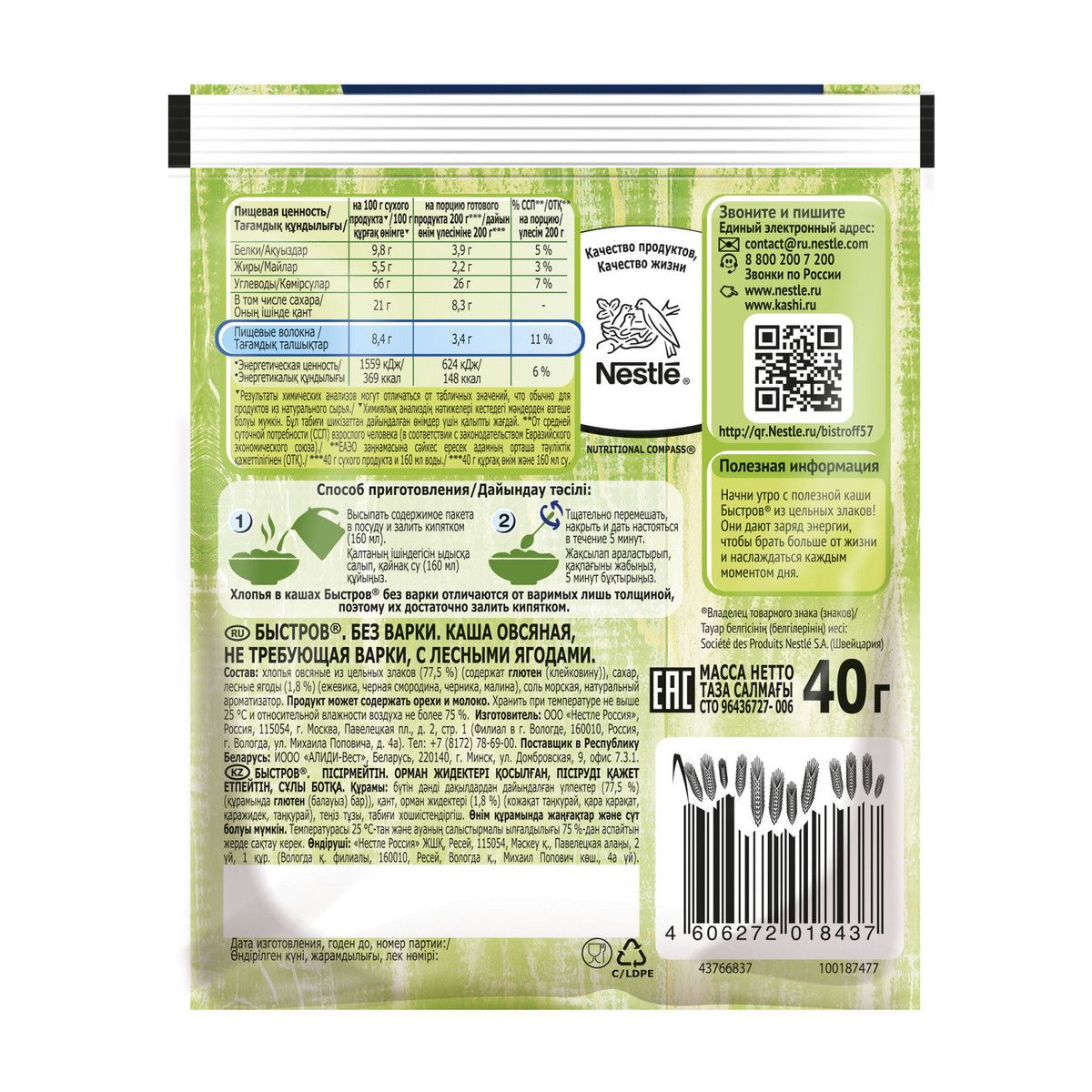 Каша быстрого приготовления Быстров Овсяная, с лесными ягодами, без варки, порционная, 40 г х 17 шт