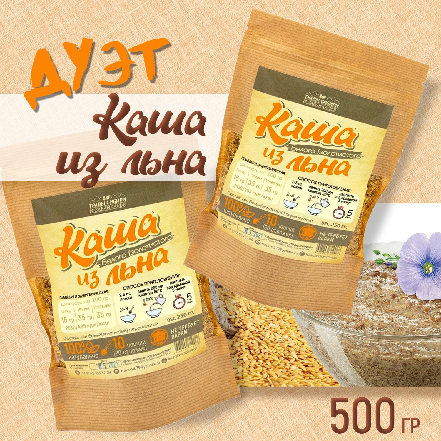Каша быстрого приготовления из семян белого льна 500г Добрый Маслодав