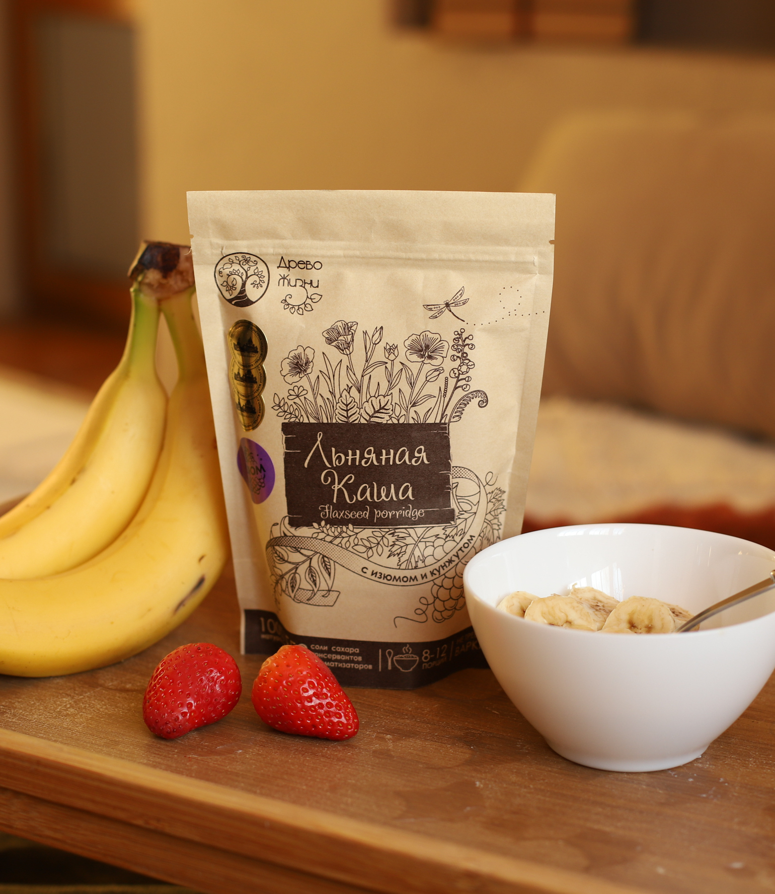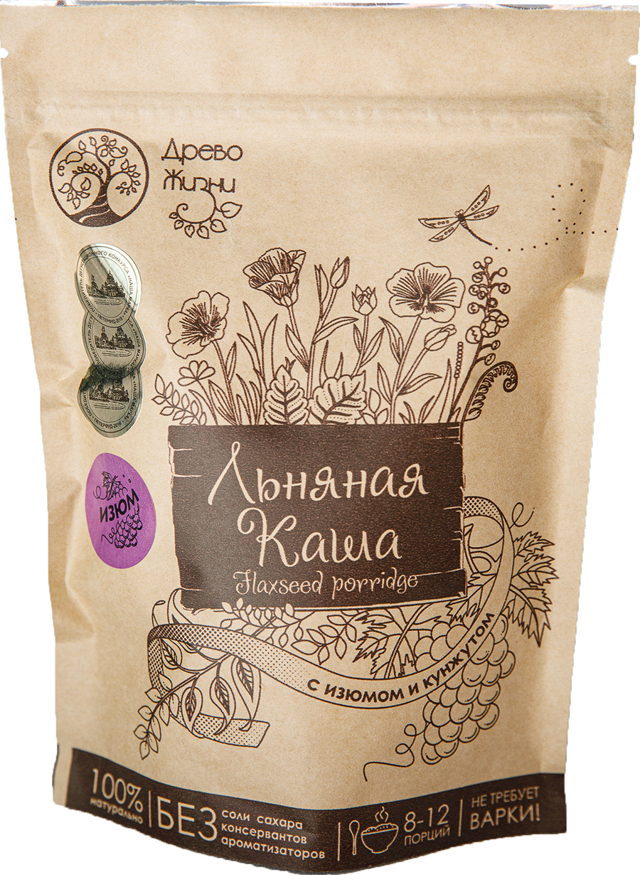 Каша быстрого приготовления, льняная, с изюмом и кунжутом, 400 гр, Древо жизни