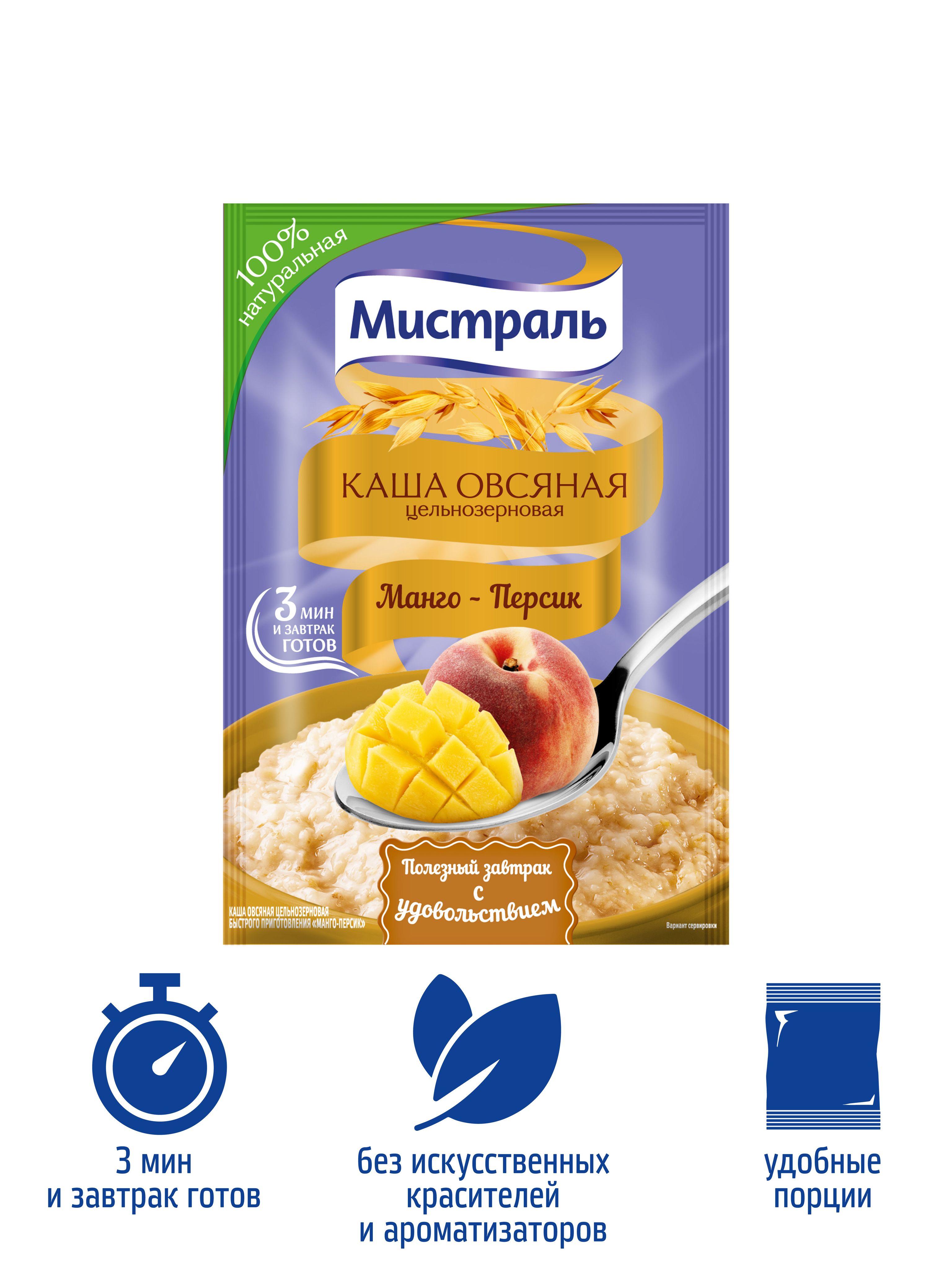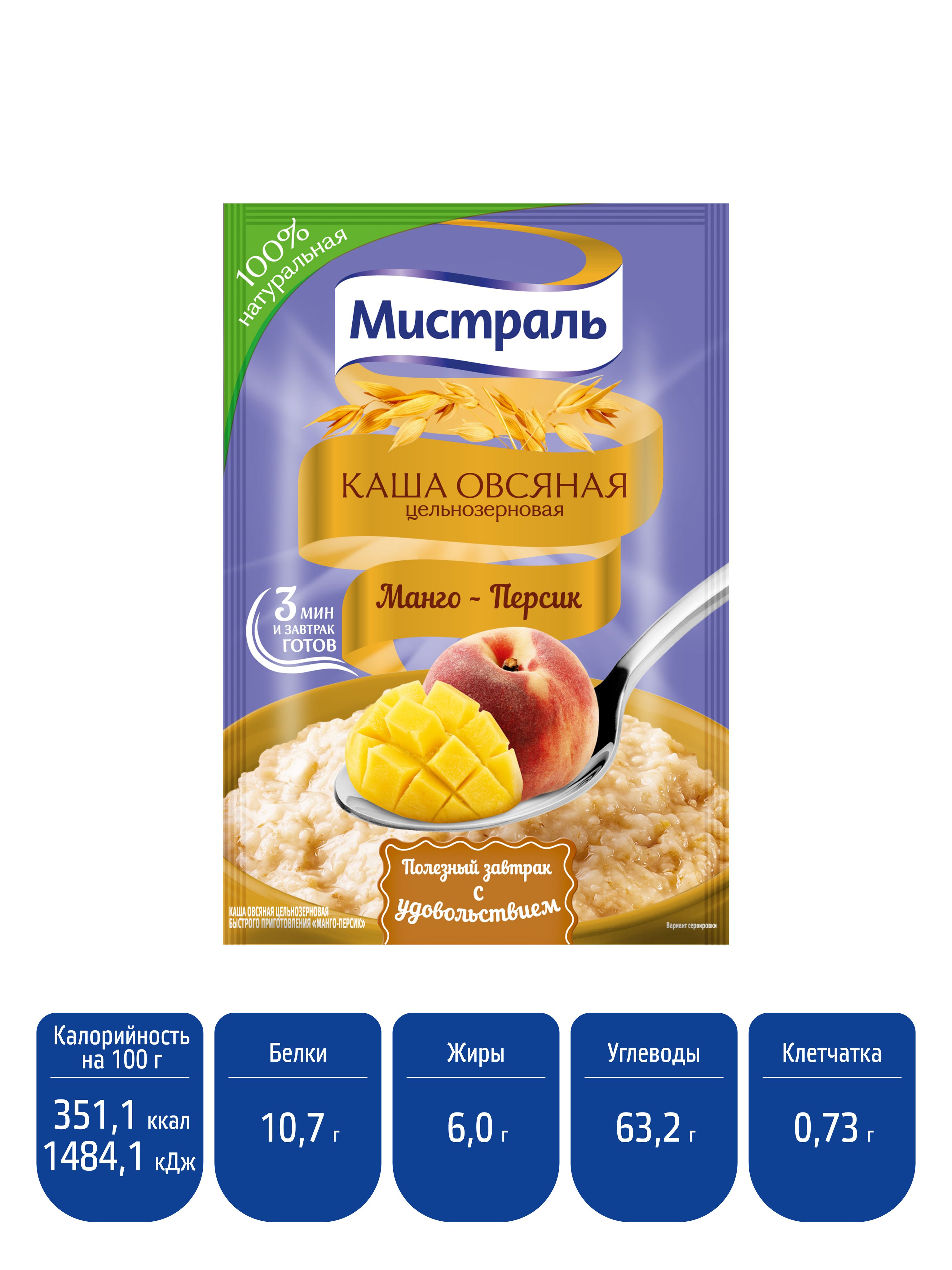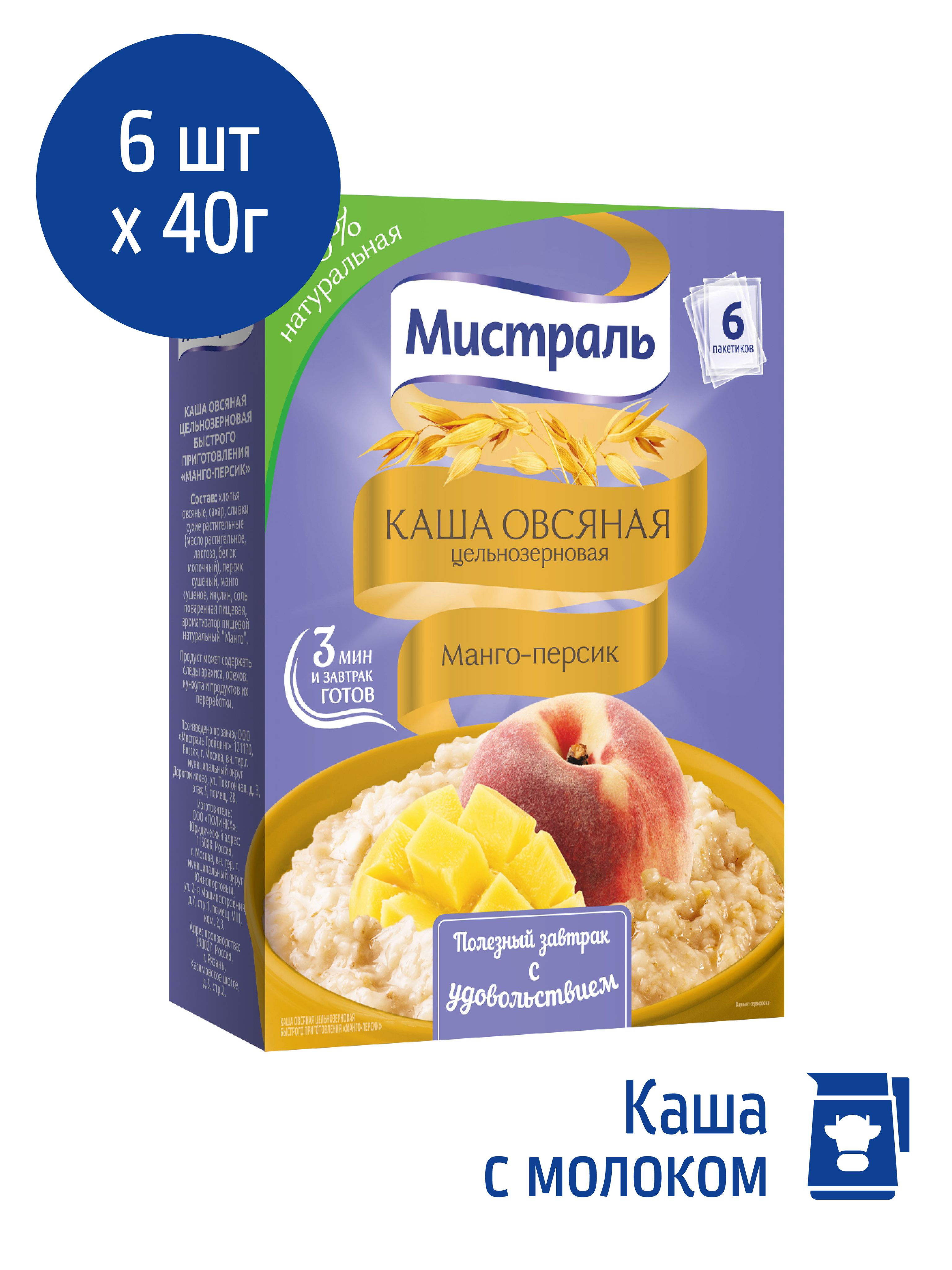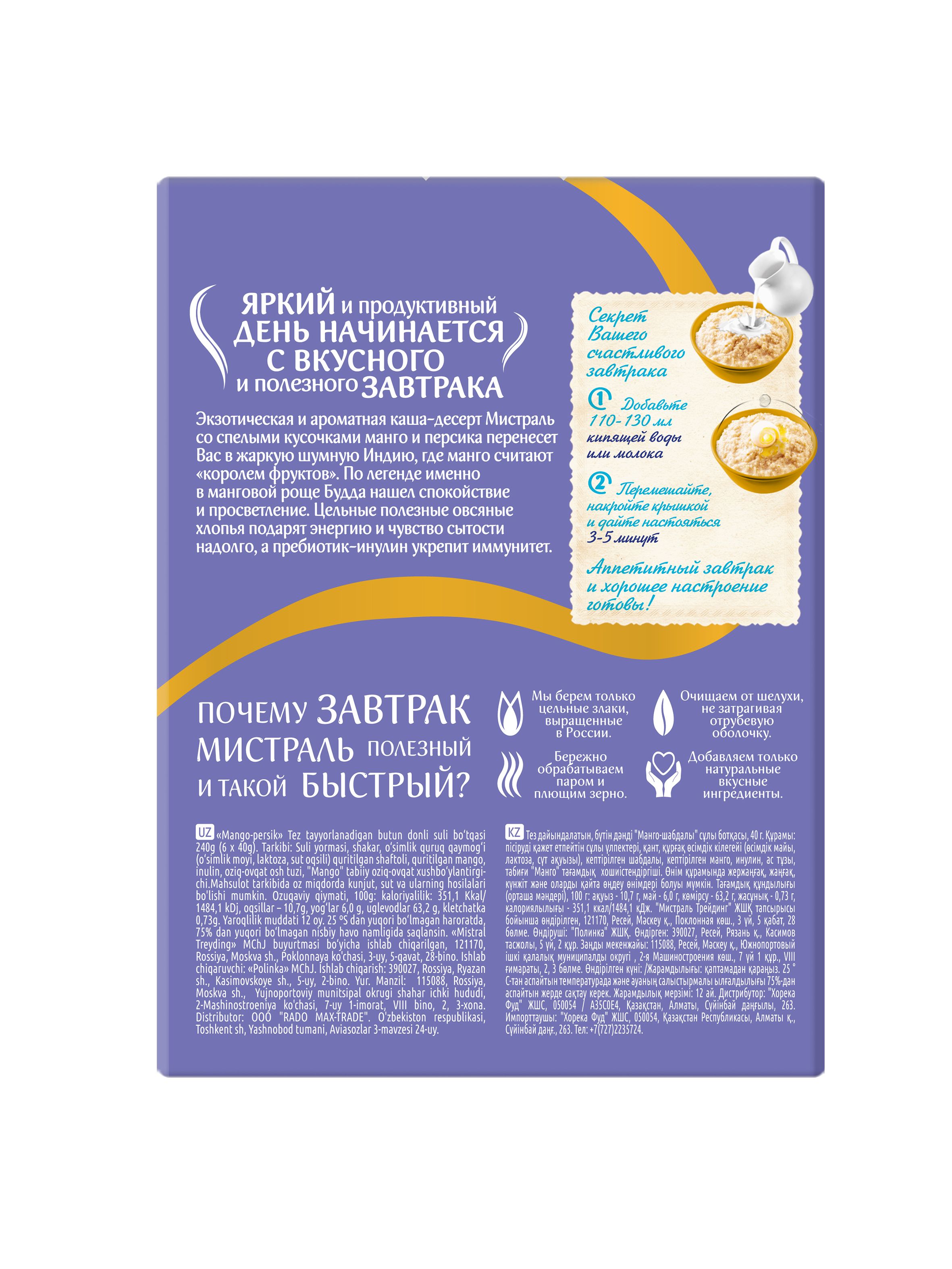 Каша быстрого приготовления Мистраль "Манго-Персик", 6 пакетиков по 40 г