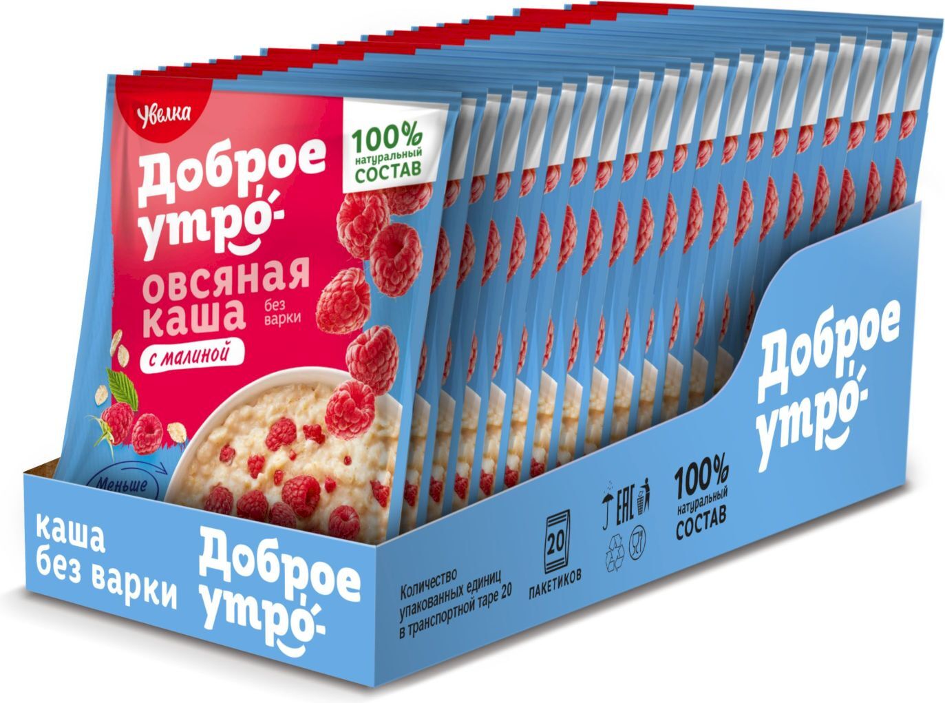 Каша быстрого приготовления Увелка овсяная с малиной, 20 шт х 40 г