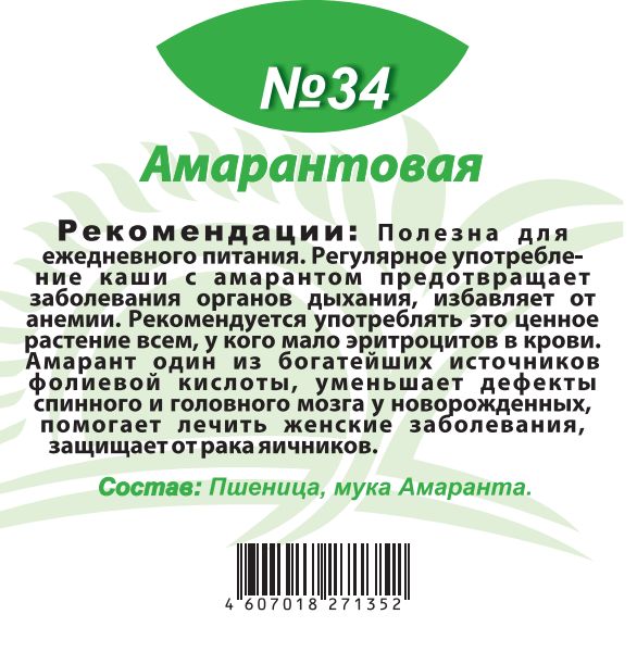 Каша "Амарантовая"полезна для ежедневного питания. Регулярное употребление каши с амарантом предотвращает заболевания органов дыхания, избавляет от анемии. Рекомендуется употреблять это ценное растение всем, у кого мало эритроцитов в крови. Амарант один из богатейших источников фолиевой кислоты, уменьшает дефекты спинного и головного мозга у новорожденных, помогает лечить женские заболевания, защищает от рака яичников.
