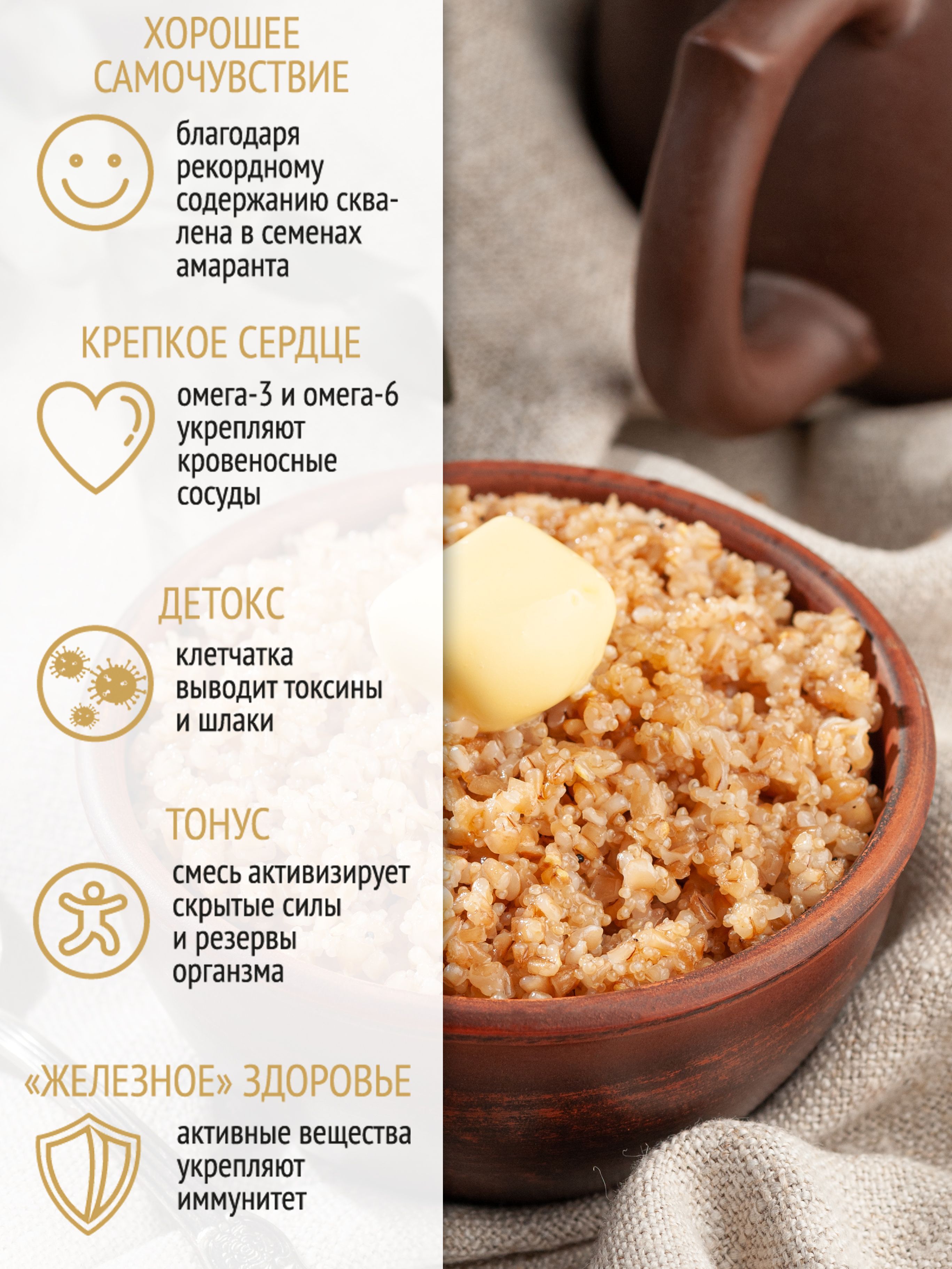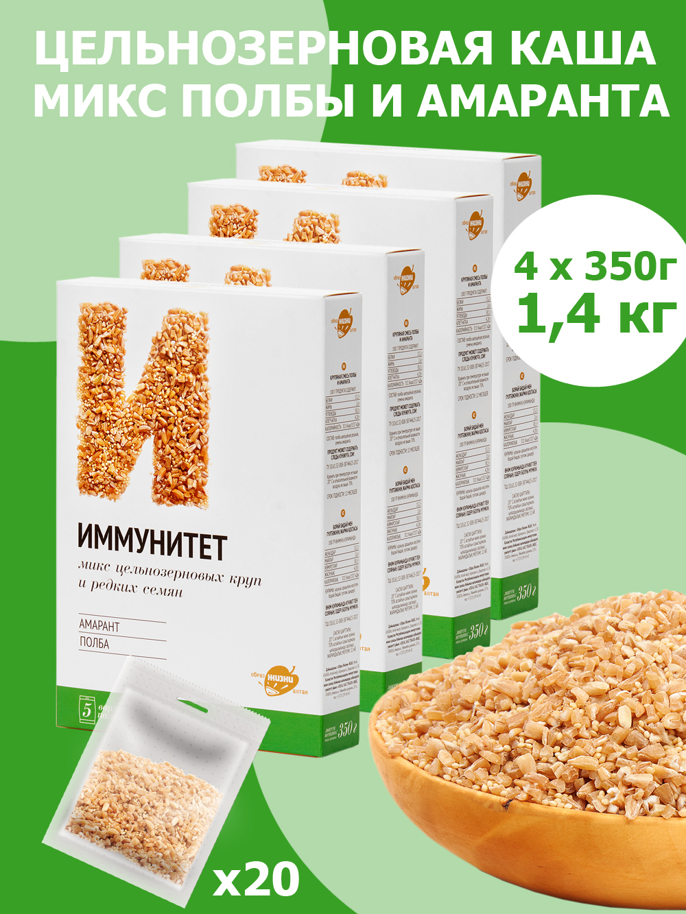 Каша цельнозерновая ИММУНИТЕТ Набор круп полба и амарант, полезный гарнир 4 шт, 1400 г
