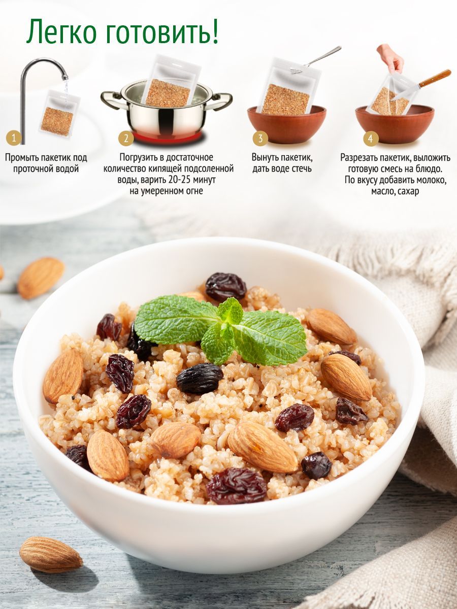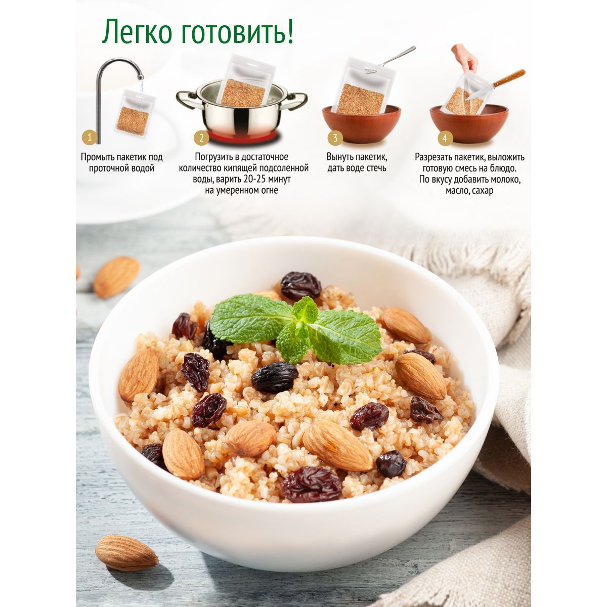 Описание: Любимая крупа в выгодном наборе!Набор из 4 пачек цельнозерновой полезной каши в варочных пакетах! Полезная бакалея!Смесь круп Иммунитет - полба и амарант.Товар известного бренда "Образ жизни Алтая" - теперь напрямую от производителя! Смеси цельнозерновых круп - эксклюзивный продукт. Эксклюзивный продуктСмесь цельнозерновых круп без добавления приправ и специй - эксклюзивный продукт. СоставСостав: полба резаная, семена амаранта.ПолбаПолба содержит магний, калий, цинк и витамины группы В, Е и РР. Мы изготавливаем крупы только из живого зерна, которое сохранило возможность прорастать. Все содержащиеся в зерне полезные элементы находятся в идеально сбалансированном для человека виде.АмарантАмарант имеет сбалансированный белковый состав и высокое содержание минеральных веществ и витаминов. По содержанию протеина амарант имеет состав, наиболее похожий на идеальный белок. Сытость надолго!Сложные углеводы медленно усваиваются, надолго обеспечивая сытость, и нормализуют уровень сахара в крови. Благодаря витамину C в семенах амаранта, снижается уровень холестерина. Компоненты семян амаранта приводят в норму обмен веществ, улучшают пищеварение. АмарантМелкие частицы в составе смеси – это семена амаранта. Амарант содержит ценное вещество - сквален, который имеет своеобразный запах и вкус. Некоторые потребители ошибочно трактуют запах амаранта, как запах прелости, дуста, иногда как химический запах. Сквален известен своим омолаживающим воздействием на организм. Также он сдерживает распространение злокачественных заболеваний, укрепляет иммунную систему человека и помогает бороться с заболеваниями.С пользой для организма!Цельнозерновая каша и полезный гарнир из смеси круп насыщена питательными веществами, незаменимыми аминокислотами. Содержащиеся в полбе особые растворимые углеводы укрепляют иммунную систему, способствуют оздоровлению всего организма. Омега-3 и омега-6 жирные кислоты укрепляют кровеносные сосуды, снижают риск сердечно-сосудистых заболеваний. Легко!Крупа в варочном пакете варится сама! Не нужно отмерять воду и ничего не прилипнет к кастрюле в процессе варки.Вкусно! Укрепляйте свое здоровье с живым натуральным продуктом с необычным нежным вкусом лесных орехов с нотками пряностей! Каша из резаной полбы и семян амаранта невероятно полезна для ИММУНИТЕТА. В одной упаковке - 5 пакетиков для варки, а во всем наборе : 20 пакетов для варки. Пакеты для варки изготовлены из специального пищевого пластика и не несут никакого вреда.В составе смеси круп - полба - содержит глютен, а также смесь круп может содержать следы кунжута и сои. Крупы в варочных пакетиках - это просто и быстро, варится 20-25 минут - еда на каждый день!Много витаминовГотовьте полезные и красивые блюда, с полезной смесью Иммунитет это стало проще! Множество вариантов использованияСо смесью круп можно приготовить кашу, гарнир. Её можно добавлять в салаты и выпечку.