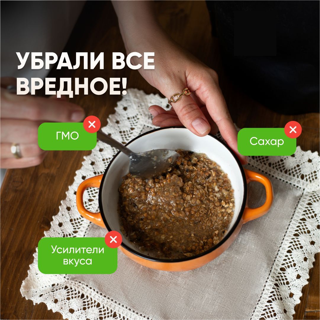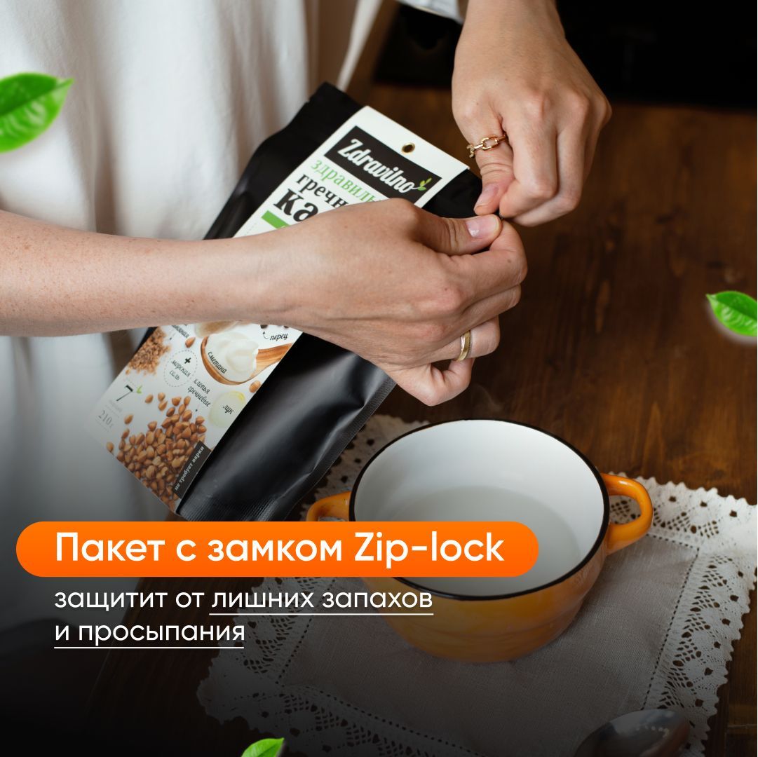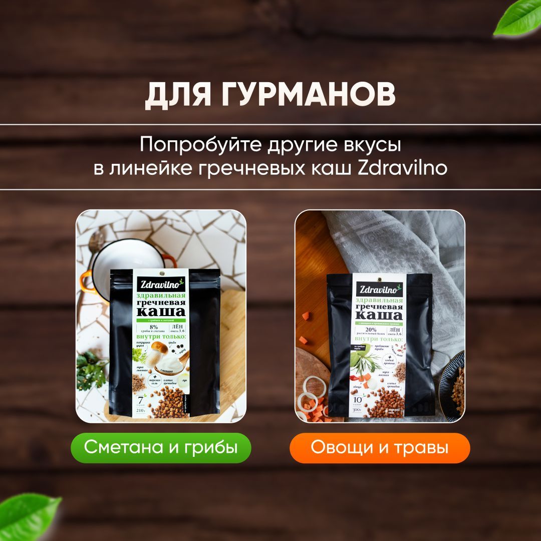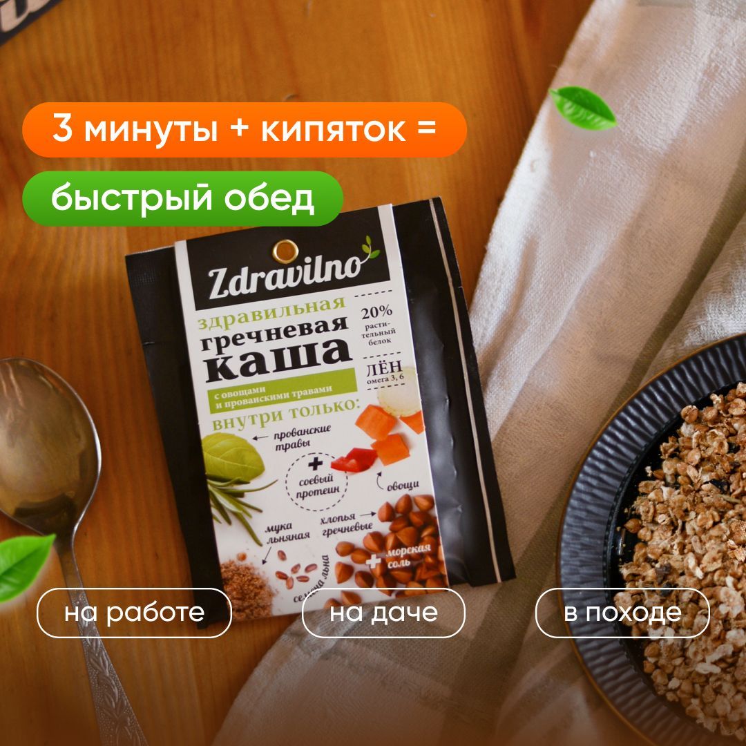 Описание: Гречневая каша быстрого приготовления бренда Zdravilno - это натуральный продукт без сахара и искусственных добавок, содержащий только гречку с натуральными ингредиентами. Расшифровка названия "Здравильно" подразумевает под собой - здоровый правильный выбор. Удобный способ приготовления делает изделие идеальным перекусом, который можно взять с собой везде - в поход, на рыбалку, в поездки, на отдых или сплавы, достаточно только заварить кипятком. Вы точно можете быть уверенным, что ваш завтрак будет полезным и насыщенным. Пакет дой - пак удобно хранить. В составе каши отсутствуют сахар, его заменители, ароматизаторы и другие вредные вещества. Изумительный вкус продукта достигается добавлением большого количества натуральных ингредиентов. В коллекции бренда представлены каши с льняной мукой, а также варианты с отрубями. Наличие нескольких вариантов изделия - со вкусом апельсина и имбиря, медовых гранул и кедровых орешков, а также двух протеиновых вкусов позволяет выбрать свой вариант каждому любителю вкусной и полезной каши. Купите гречневую кашу в порционных пакетах и наслаждайтесь полноценным завтраком каждый день недели без долгого приготовления. Это идеальный вариант здорового питания в любом месте: на работе, в дороге или в путешествии, во время отдыха на природе. Наша гречневая кашка - это не только быстрое и удобное решение для завтрака, но и полезный продукт для тех, кто следит за своей диетой и здоровым образом жизни. Так же вы найдете крупяные смеси с сухофруктами, орехами и ягодами, а также цельнозерновые хлопья и крупы в удобных пакетиках. Каша в упаковке подходит для легкой и быстрой варки дома. Каждый пакетик протеиновой каши с добавлением сушеных фруктов или ореховых кусочков, а также отрубей и гранул, содержит кладезь полезных веществ. Вкусная и нежная каша подойдет всем, от детей до взрослых, пожилых людей и лежачих больных. Такие кашки - это настоящая помощь для родителей, ведь они отлично подходят для детского питания. Также каша без добавления сахара и животных продуктов подходит для поста и веганской диеты. В каше много сложных углеводов и пищевых волокон, что делает ее идеальным выбором для правильного питания, похудения, обеспечивая Вас энергией на весь день. Такая крупа в пачке, которая готовится буквально за минуту - идеальный вариант для любителей простых классических вкусов и рецептов. Подарочная упаковка делает продукт идеальным сувениром из России для туриста или друга. Растворимая постная каша подходит для быстрого перекуса на работе или во время прогулки по городу. Вкусное блюдо с фруктами и ягодами для здорового и правильного питания - это лучший вариант полезного завтрака утром. Гречневая крупка быстрого приготовления - это продукт бакалеи, которы должен быть в каждом доме. Такого рода продукты с молотыми и дроблеными добавками подходят для пп и домашней кулинарии. Если у вас всего "минутка" на обед, наша крупка станет отличным выбором. Это отличное походное и дорожное здоровое питание в удобной упаковке. Это универсальный подарок для детей, взрослых, мамы и папы, любимого человека, вегетарианцев и веганов на любой праздник. Кушайте на здоровье