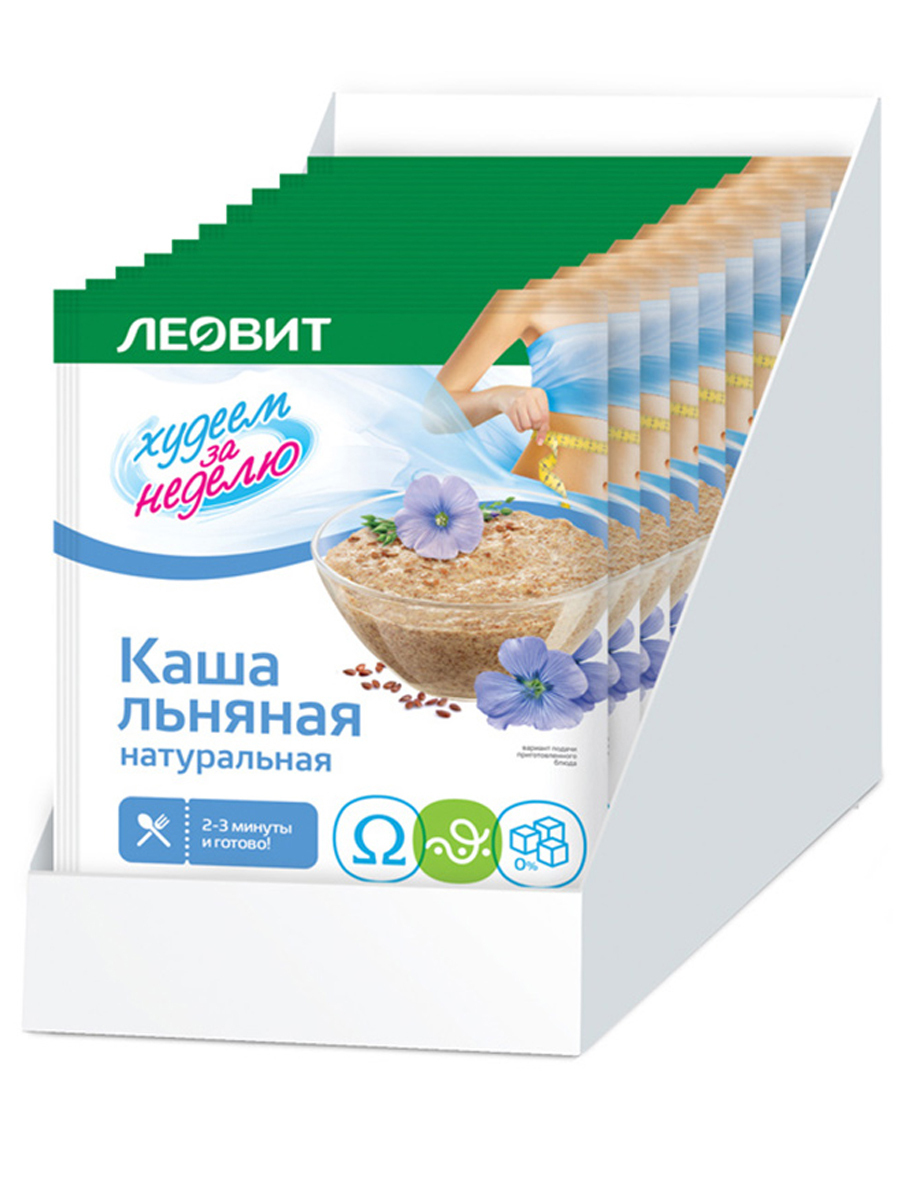 Каша льняная Худеем за неделю от ЛЕОВИТ без сахара натуральная Упаковка 15 порций по 30 г