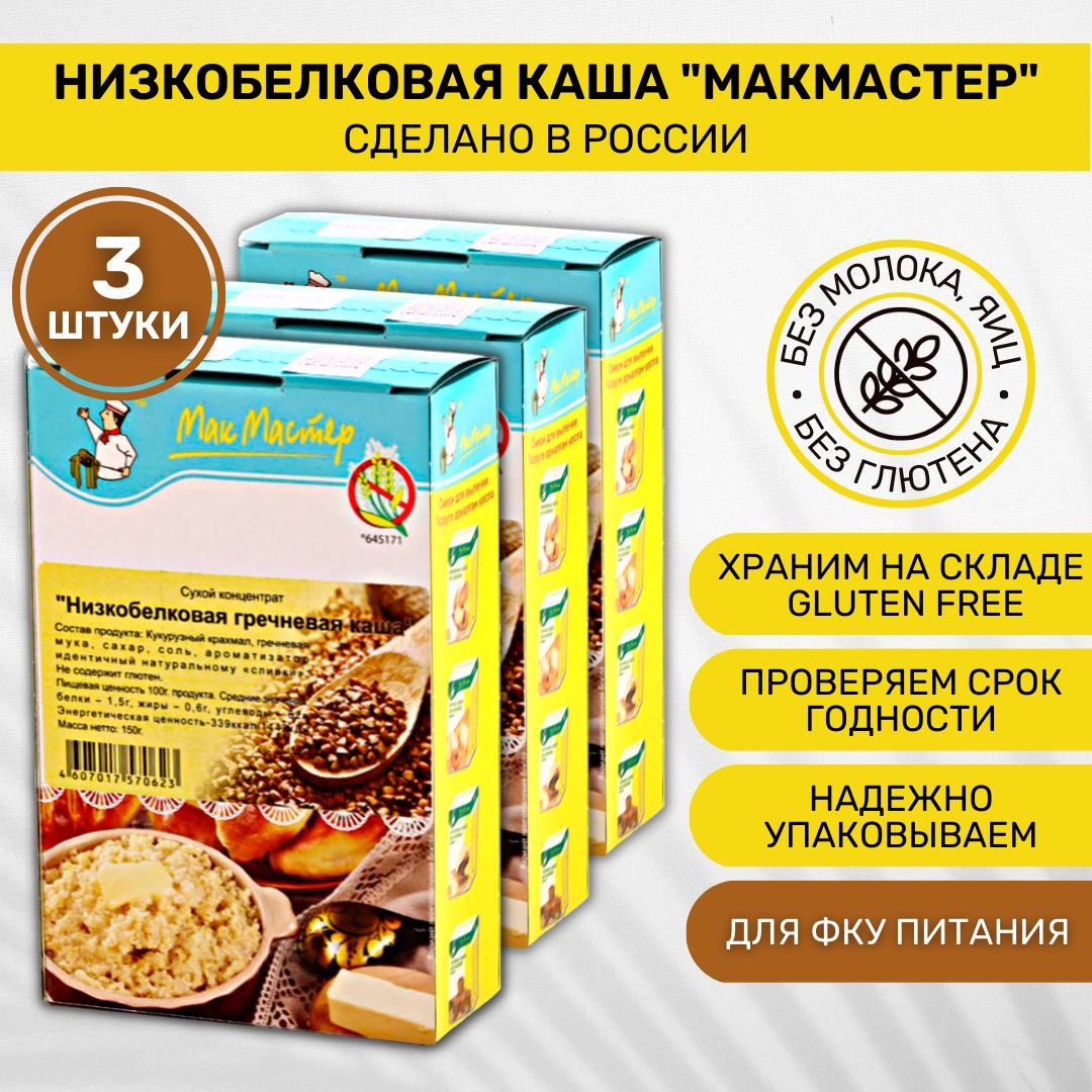 Каша МакМастер без глютена низкобелковая гречневая 3 шт по 150г