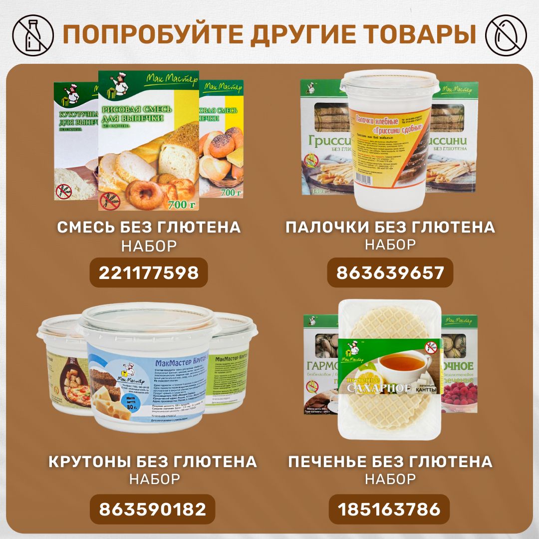 Пробуйте разную продукцию из муки без глютена, без лактозы , без молока, без яйца , без пшеничный крахмала, без орехов , без рыбы / моллюсков , без шоколада.