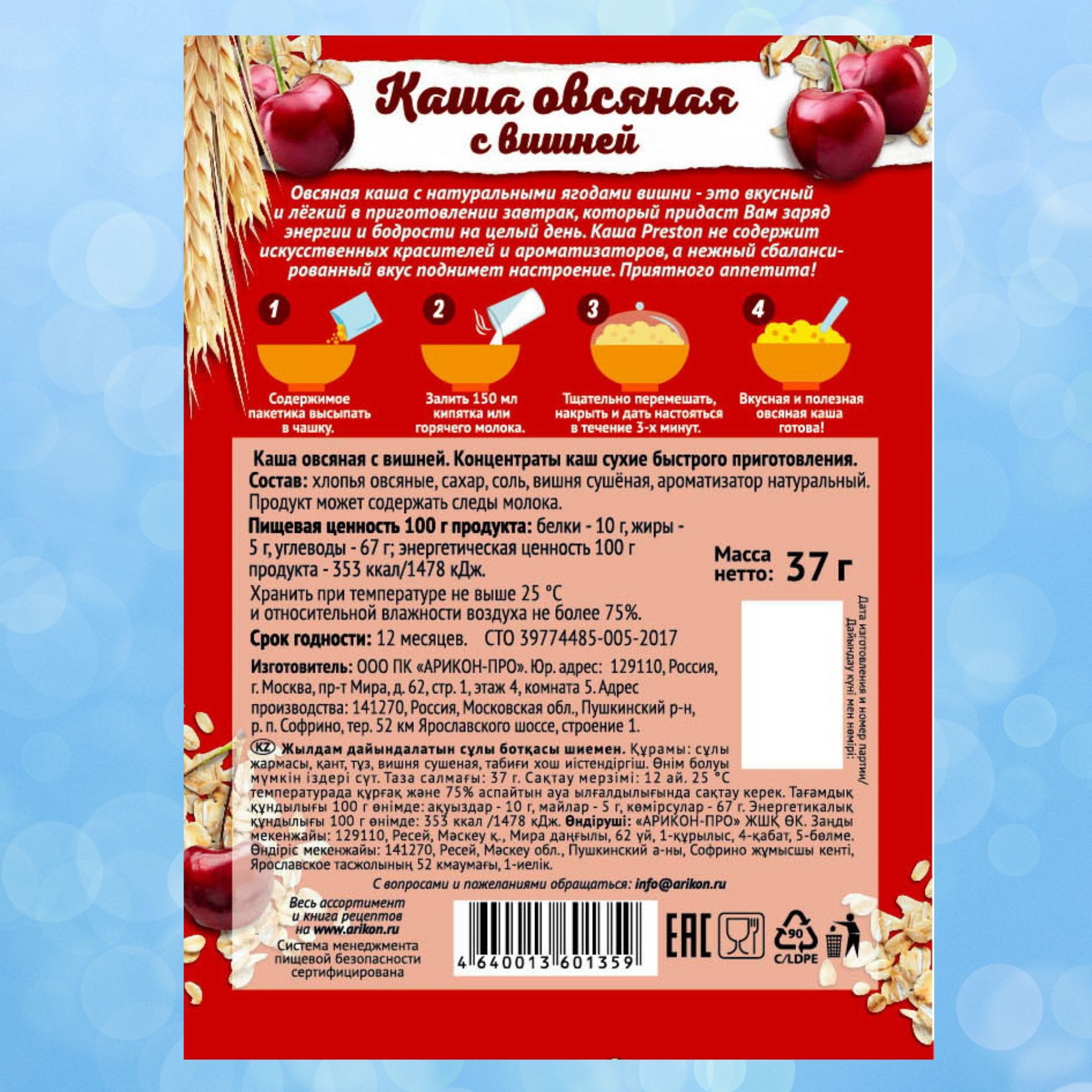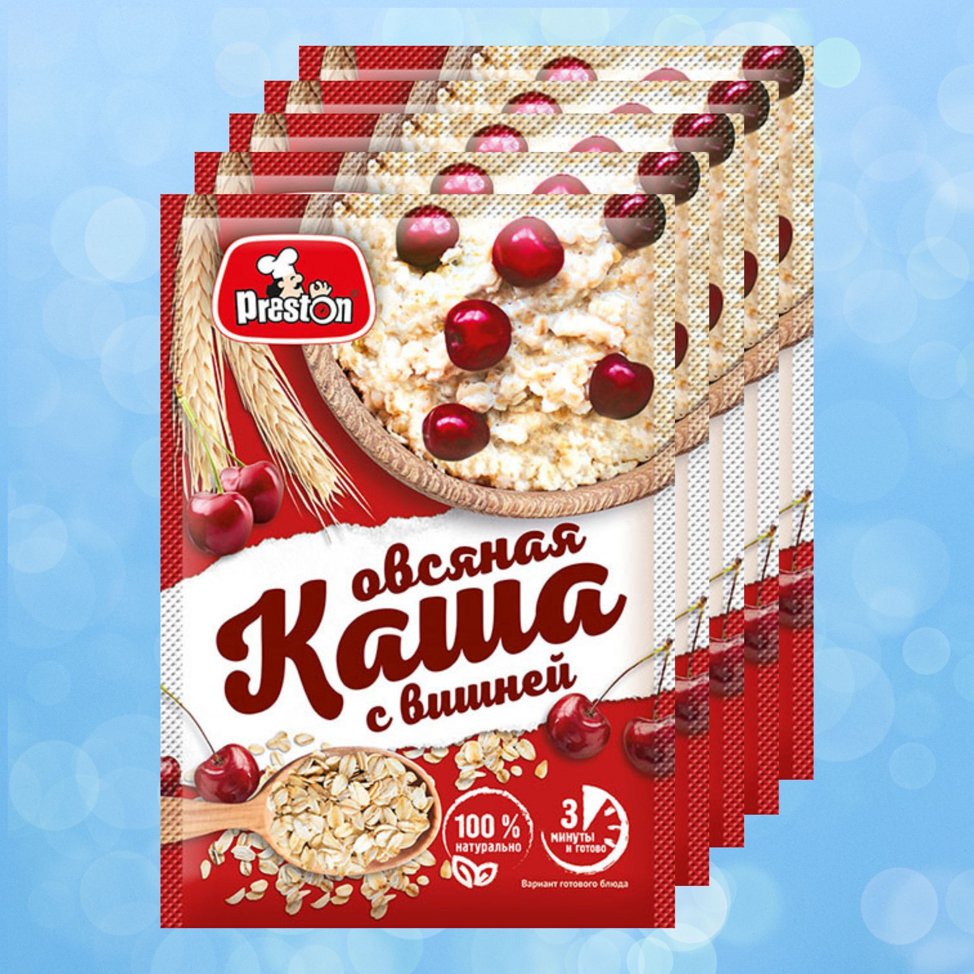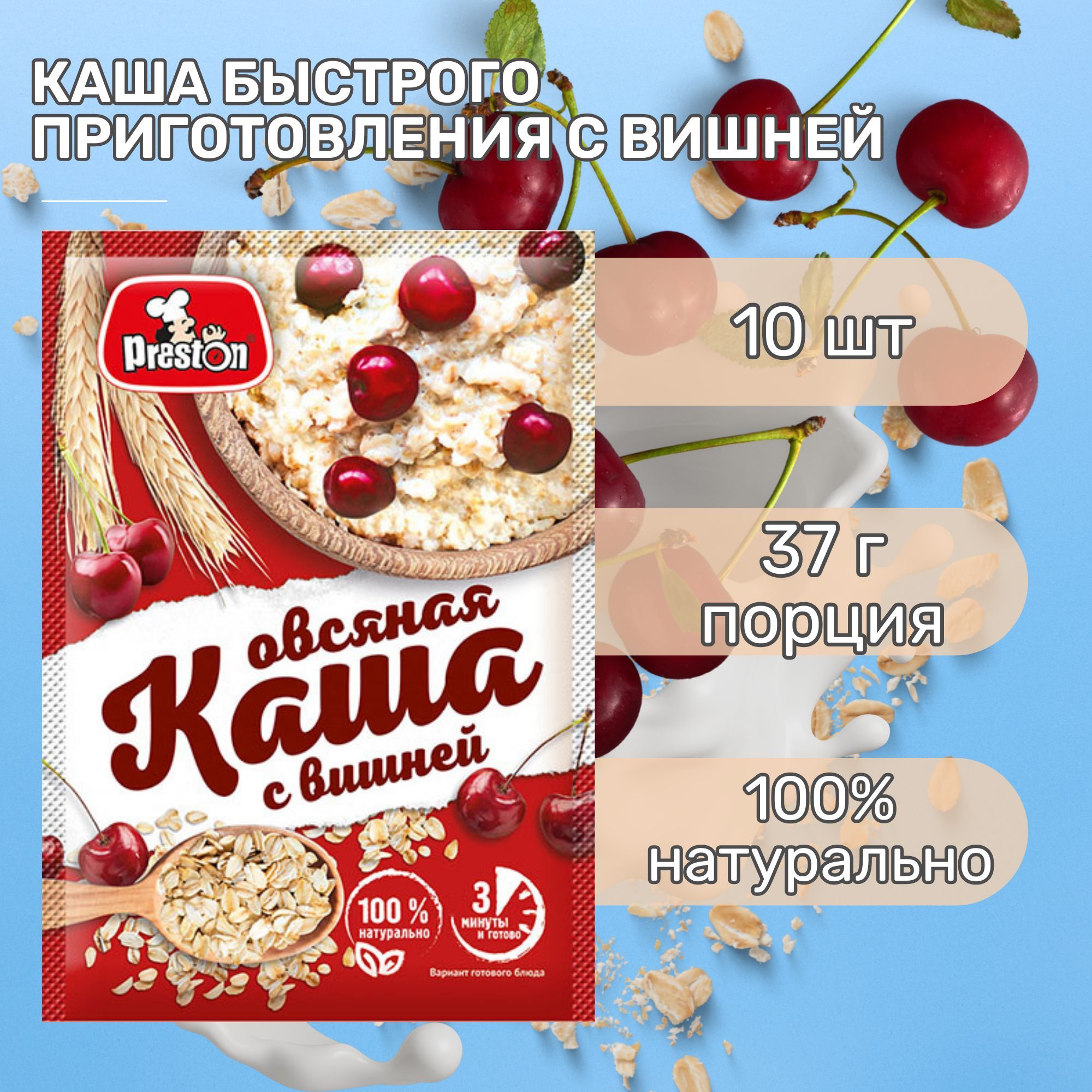 Каша овсяная быстрого приготовления Preston с вишней, в пакетиках 37 г, 10 шт.