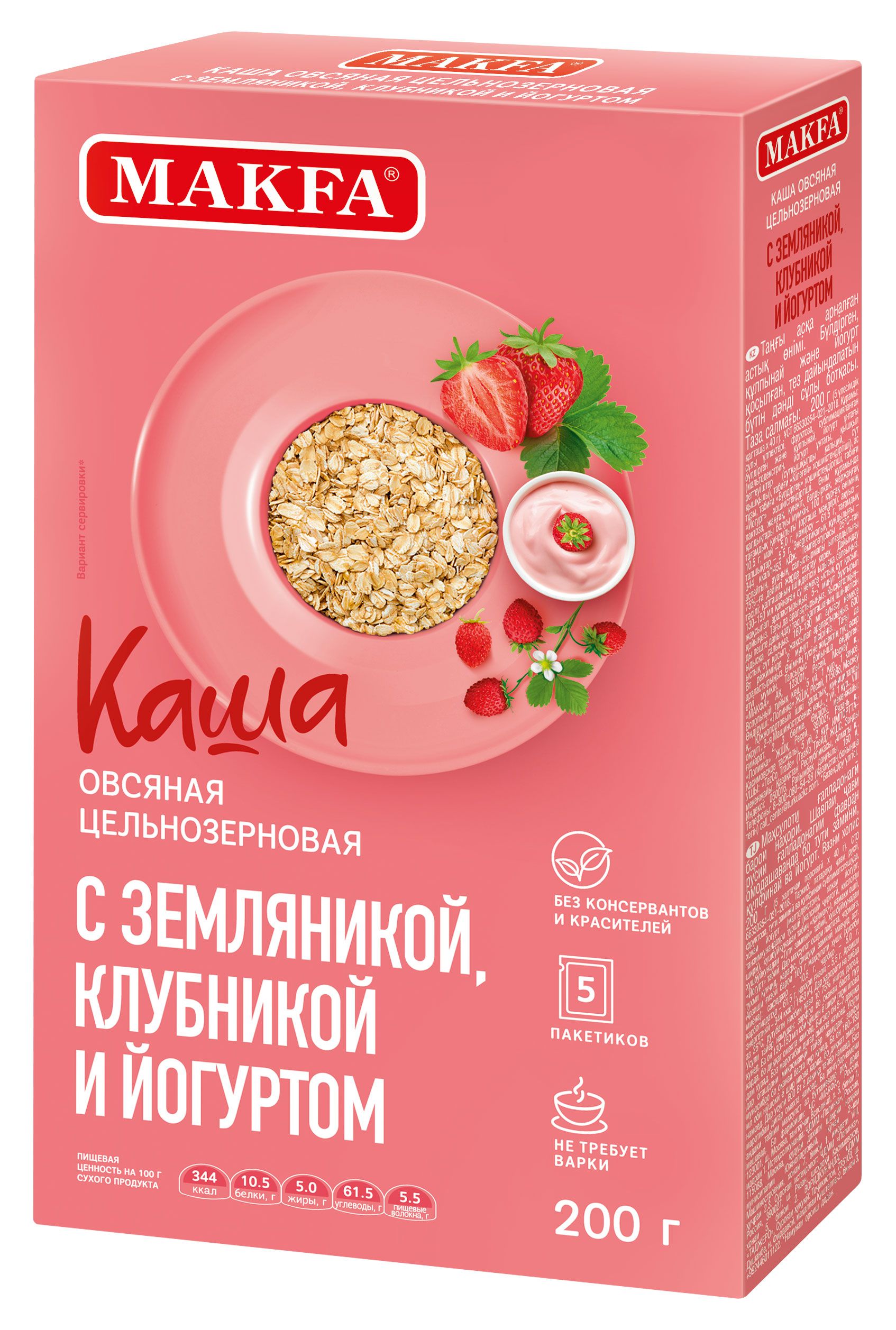 Каша овсяная цельнозерновая моментального приготовления с земляникой, клубникой и йогуртом Makfa , 200г