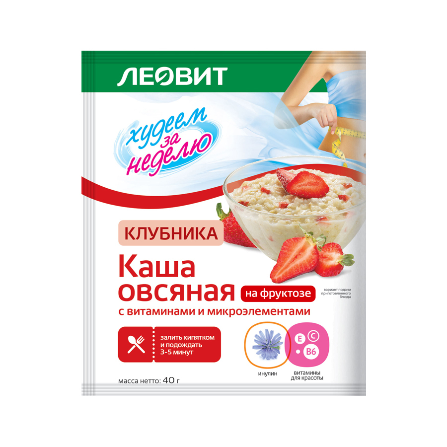 Каша овсяная Клубника с витаминами и микроэлементами Худеем за неделю от ЛЕОВИТ без сахара быстрого приготовления в пакетиках 10 шт по 40 г