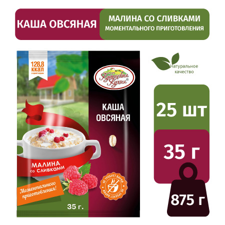 Каша овсяная "Малина со сливками" "Кубанская кухня" 35г., набор 25 шт