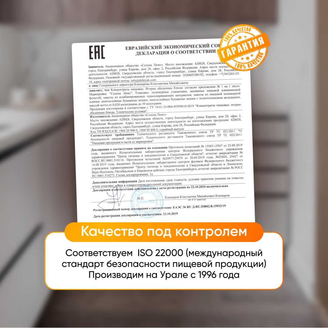 Не содержит: Без ГМО, Без ароматизаторов, Без глютена, Без злаков, Без консервантов, Без сахара, Без сои, Без яиц, Вкусовые добавки, Глутамат натрия, Загустители, Искусственные добавки, Искусственные красители, Лактоза, Пальмовое масло, Подсластители, Хлор