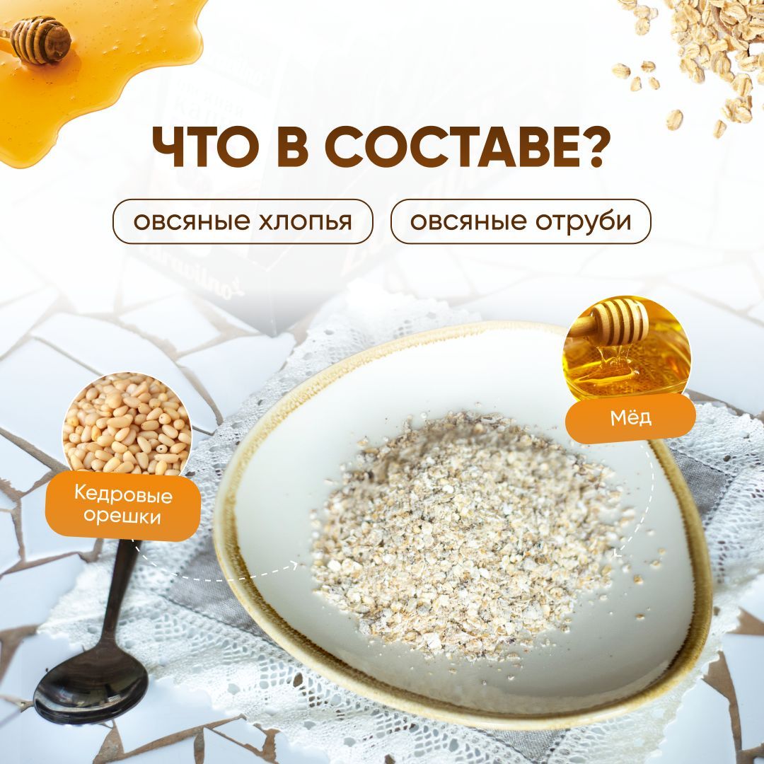 Хлопья овсяные, медовые гранулы, овсяные отруби, кедровая мука, кедровые орехи