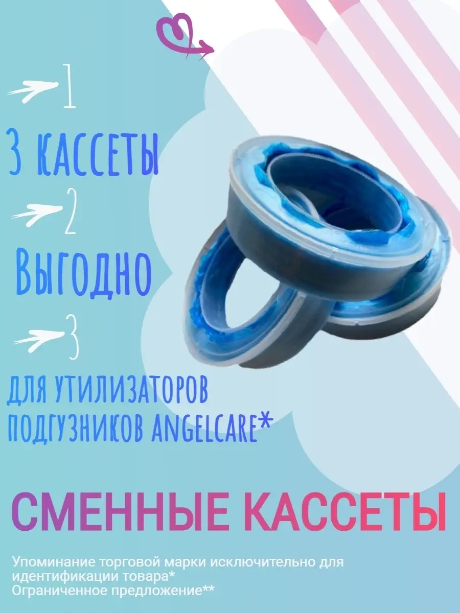Комплектация Кассеты - 3 шт; кассеты для angelcare; angelcare