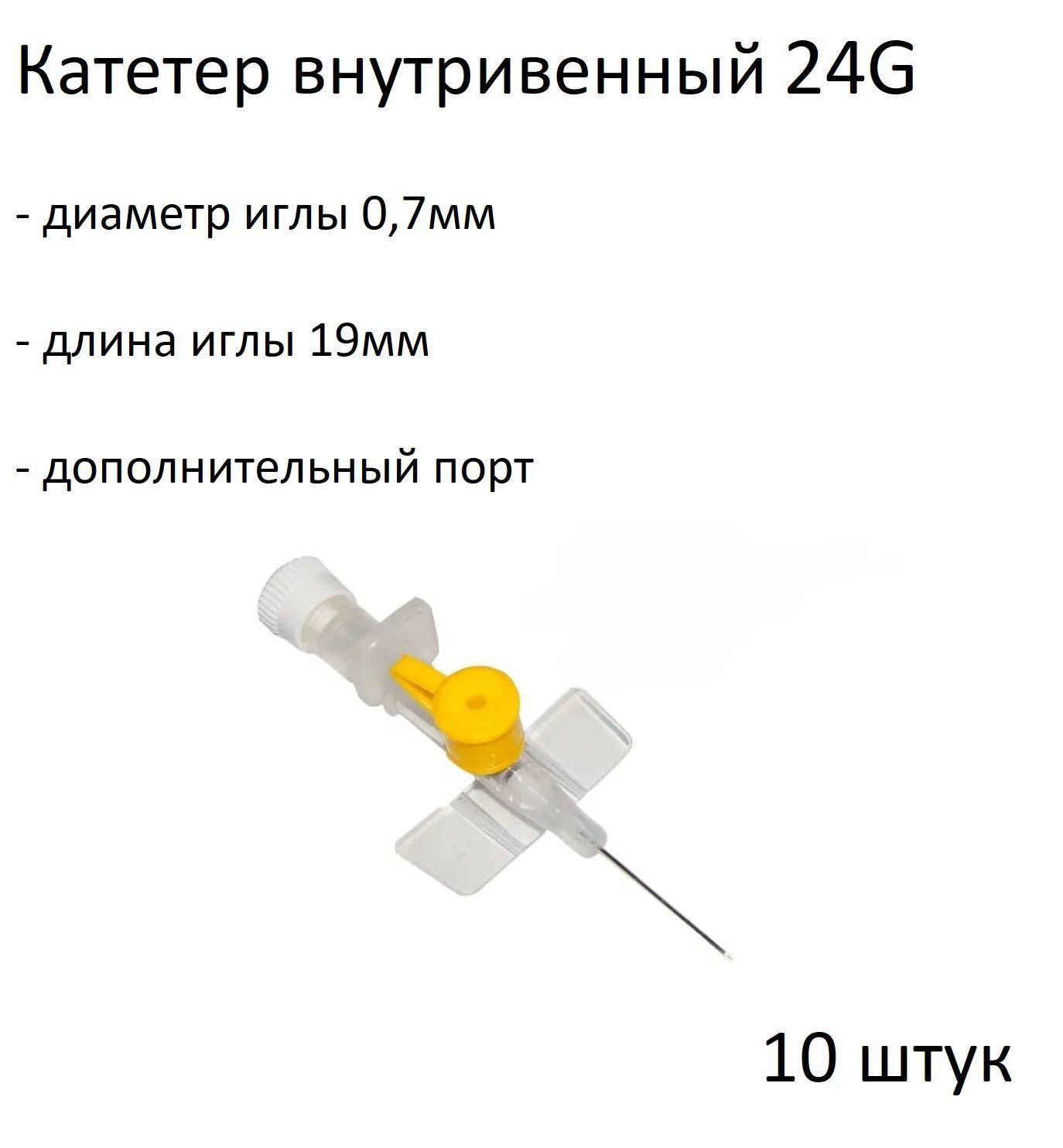 Катетер внутривенный 24G с дополнительным портом (0,7*19mm) 10 штук