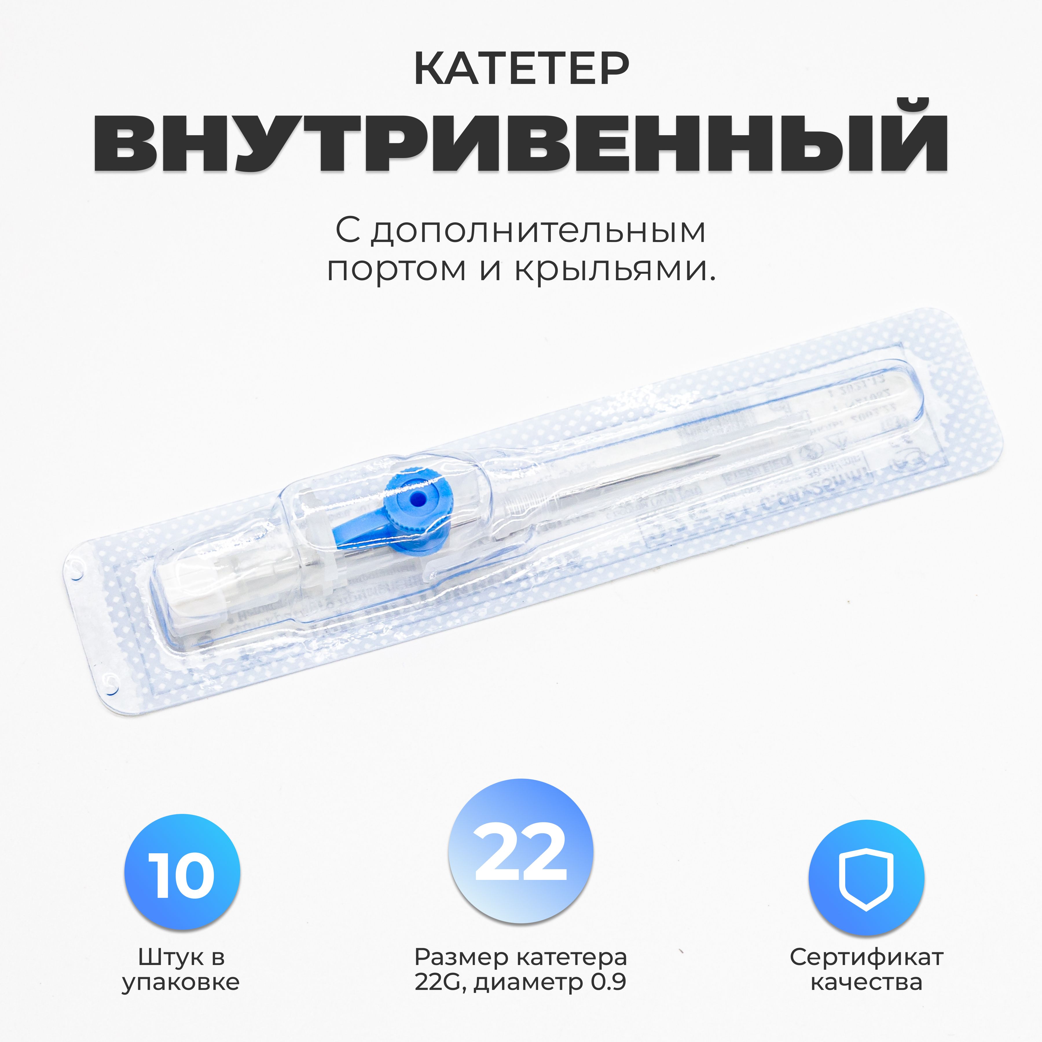 Катетер внутривенный G22, 10 штук, диаметр 0,9мм длина 25 мм.