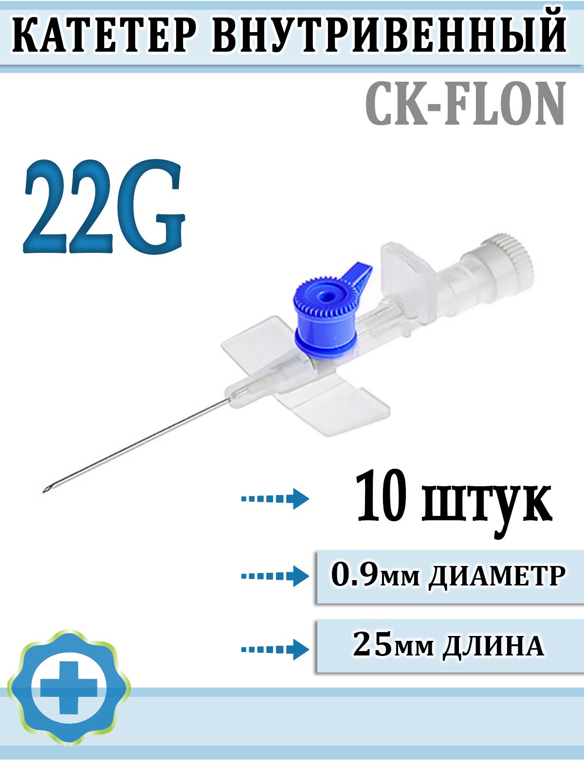 Описание: Катетер внутривенный Канюля 22G CK-FLON (СК-ФЛОН) с крыльями и дополнительным инъекционным портом, 10шт
