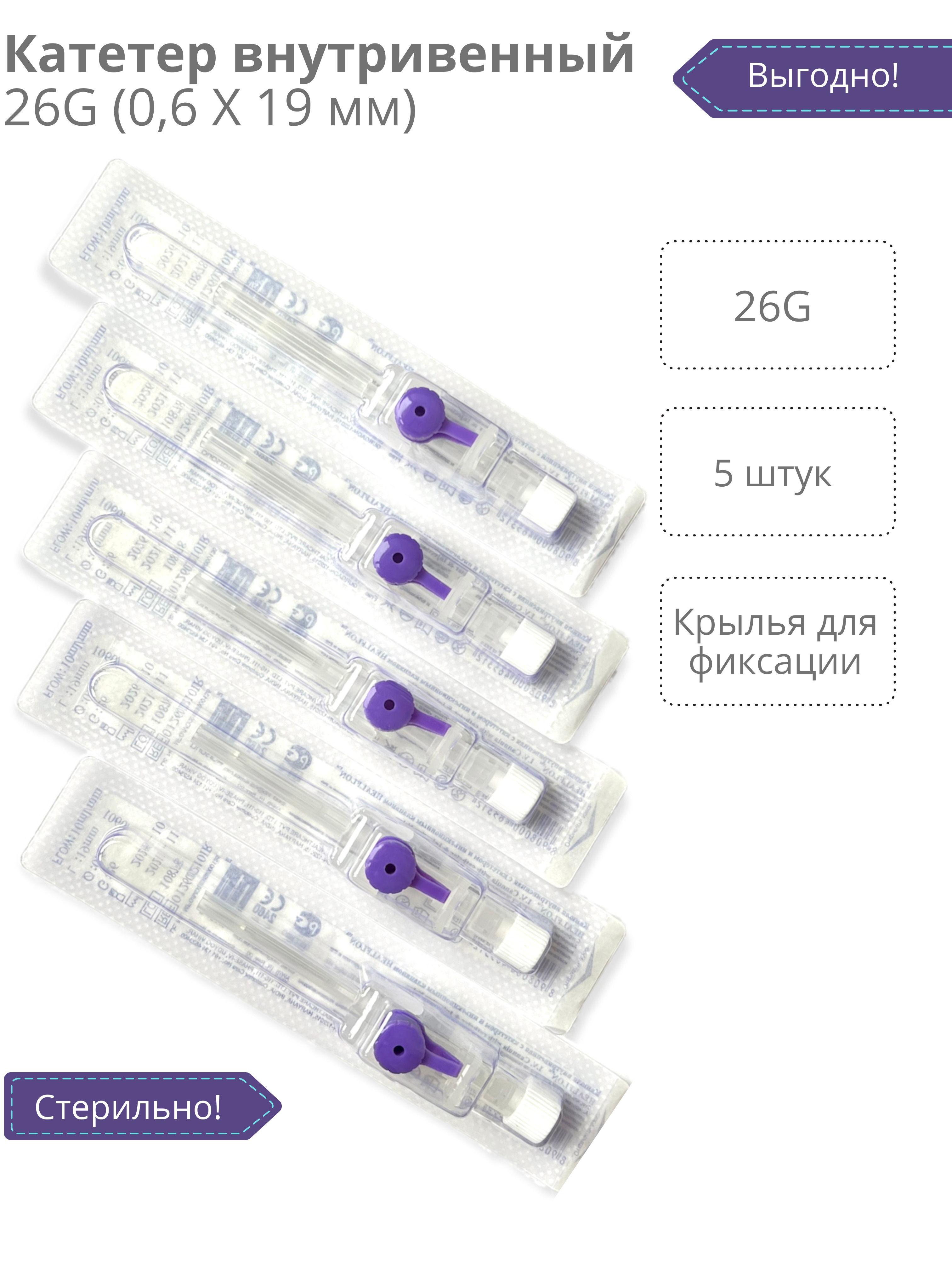 Катетер внутривенный с портом G26 - 5 шт