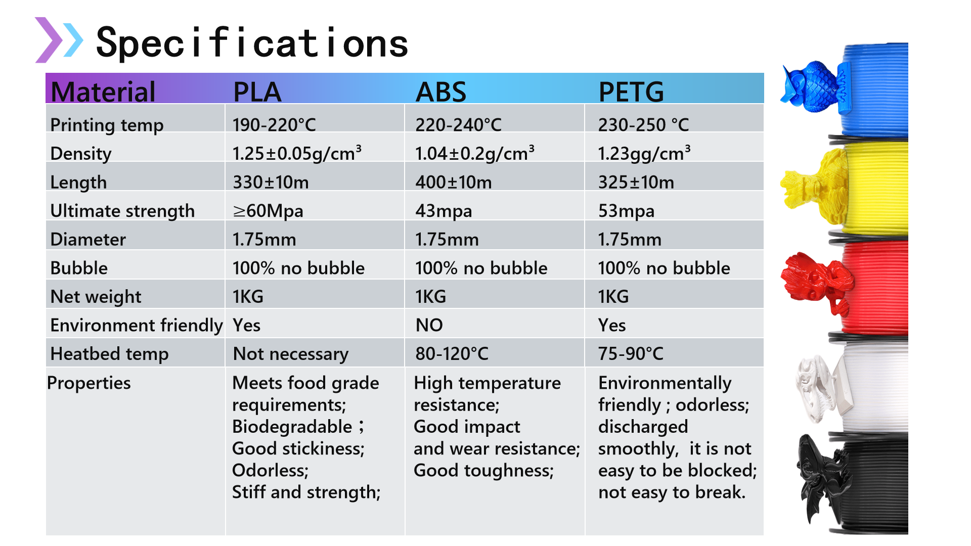 • Диапазон температур печати PLA 170 - 210 по Цельсию