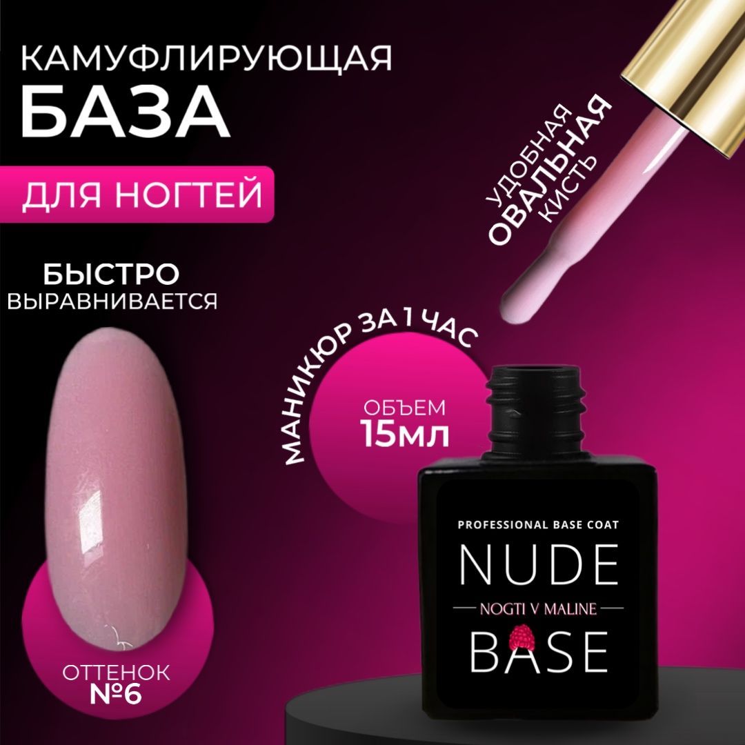 Описание: БАЗА ОТ НОГТИ В МАЛИНЕ это нежнейшая цветовая палитра камуфлирующих баз, которые никогда не выйдут из моды! Коллекция из САМЫХ популярных оттенков от молочного до нежно розового с серебряным, золотым, голографическим микро шиммером. Натуральные оттенки баз можно использовать как самостоятельное покрытие, так и миксовать с необычными принтами, фольгой и стразами. База гибкая и эластичная имеет средне - жидкую консистенцию, скрывает дефекты и легко выравнивается. Основа под гель лак подходит как для мягкой, так и для жесткой ногтевой пластины. Благодаря своей консистенции работать с ними комфортно как начинающим, так и опытным мастерам. База для ногтей совместима с любыми гель лаками, так же может быть использована как универсальное средство для двухфазной системы база - топ. Это существенно поможет сэкономить ваше время! Что не мало важно камуфлирующая база легко снимается. База наносится на подготовленную ногтевую пластину. Рекомендуется делать подложку из прозрачной базы. Подложка обезопасит ногтевую пластину от проникновения цветного пигмента, обеспечит безопасное снятие цветной базы полностью, продлит срок носки. > Липкого слоя нет, что говорит о гиппоаллергенности материалов. Технология нанесения: