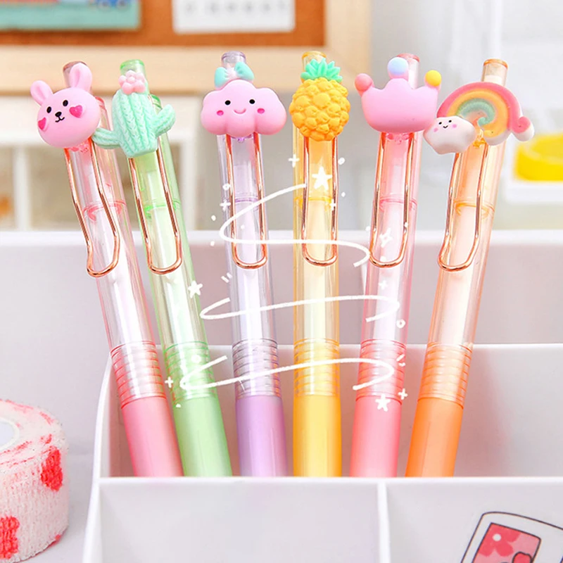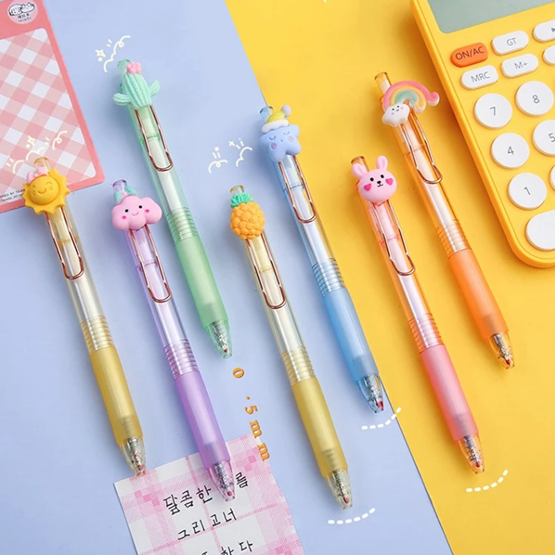 Кавайная гелевая ручка с изображением кактуса и фруктов, милая 0,5 мм черная чернильная фоторучка, рекламный подарок, офисные и школьные принадлежности