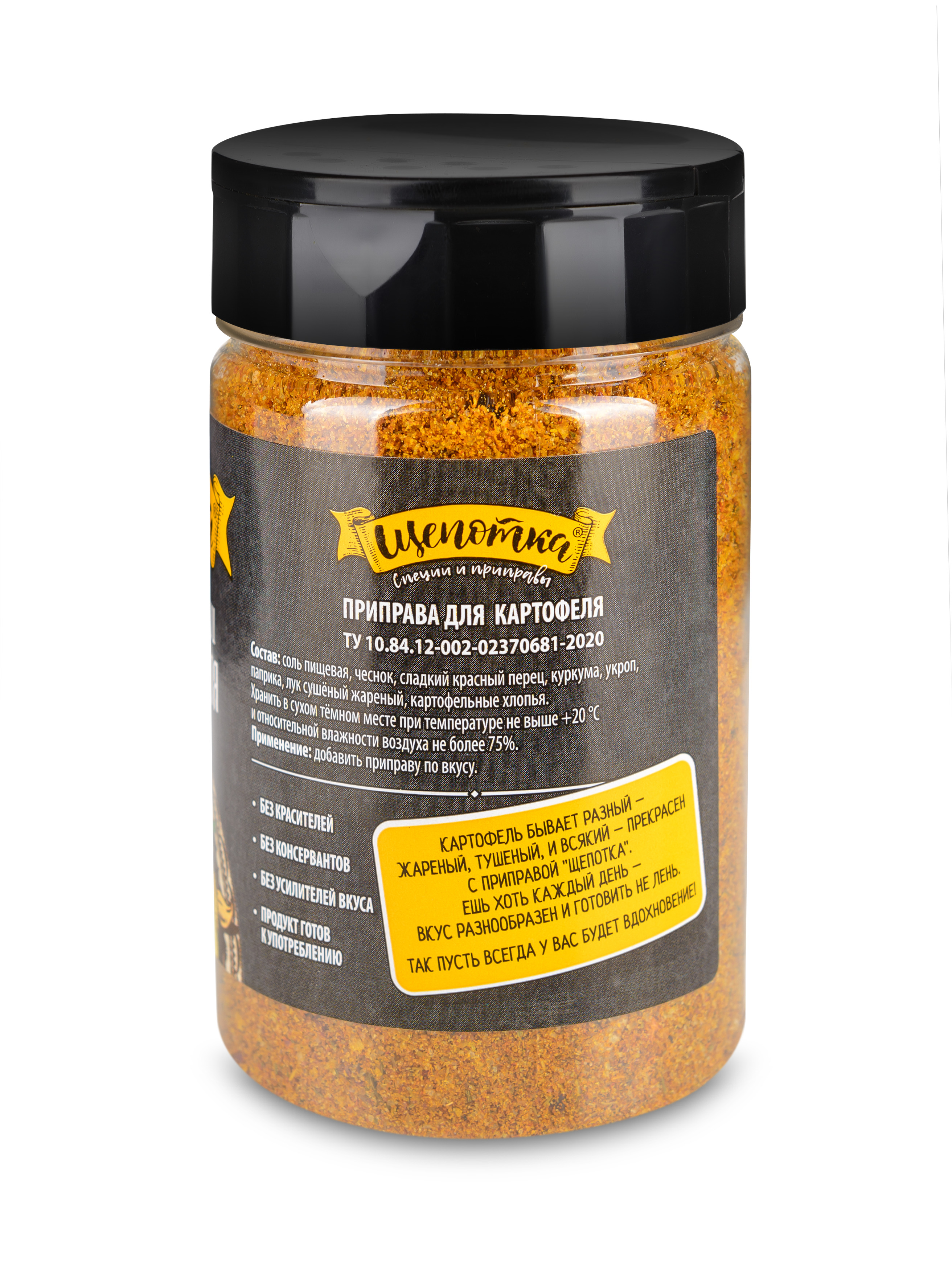 соль пищевая, чеснок, сладкий красный перец, куркума, укроп, паприка, лук сушёный жареный, картофельные хлопья
