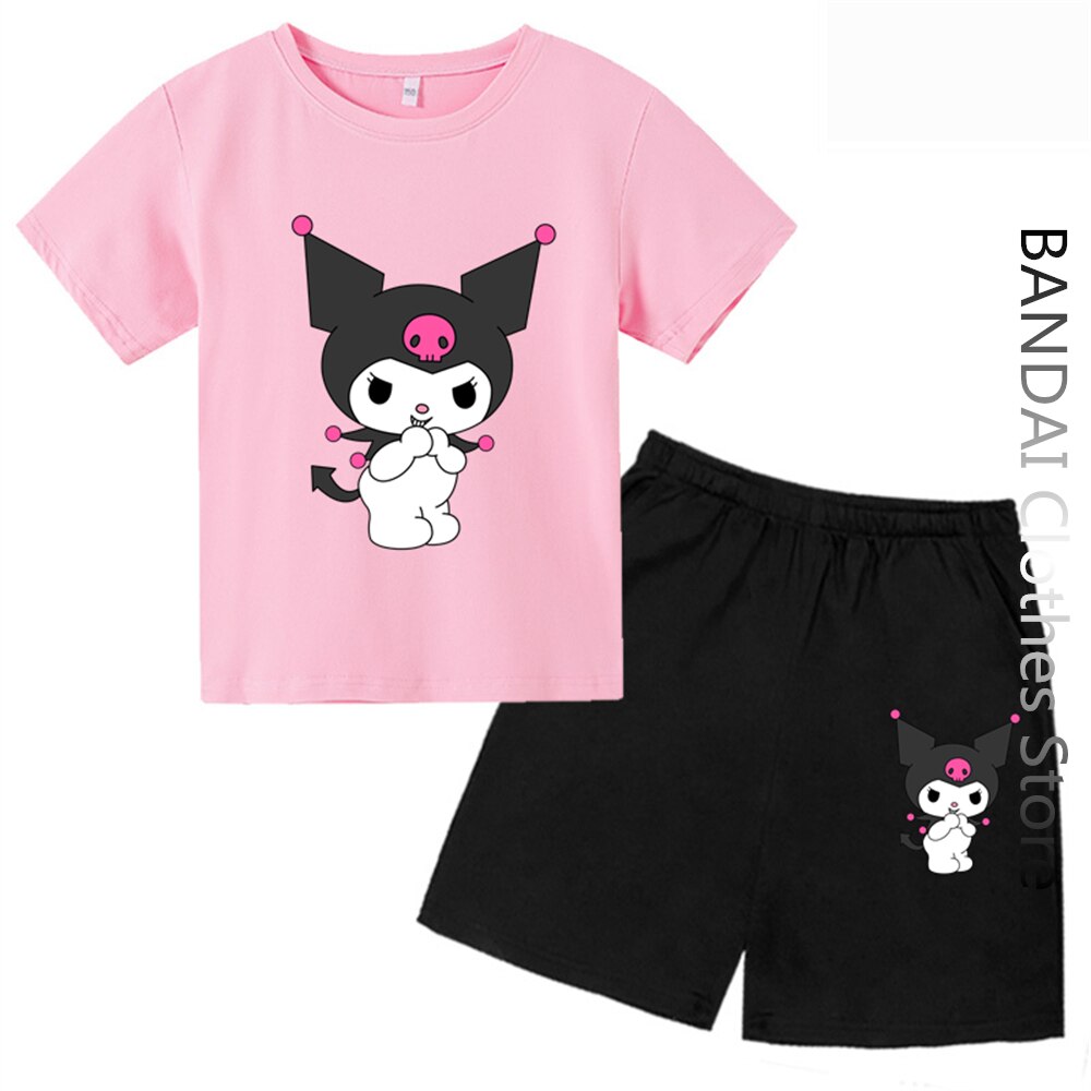 Kawaii Kuromi футболка для девочек Модная хлопковая одежда для мальчиков аниме мультфильм дети чистые мужчины женщины Hello футболка Китти комплекты повседневная одежда