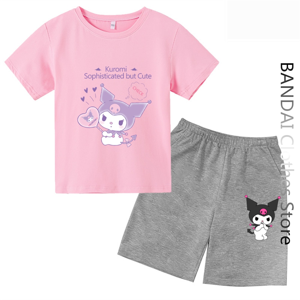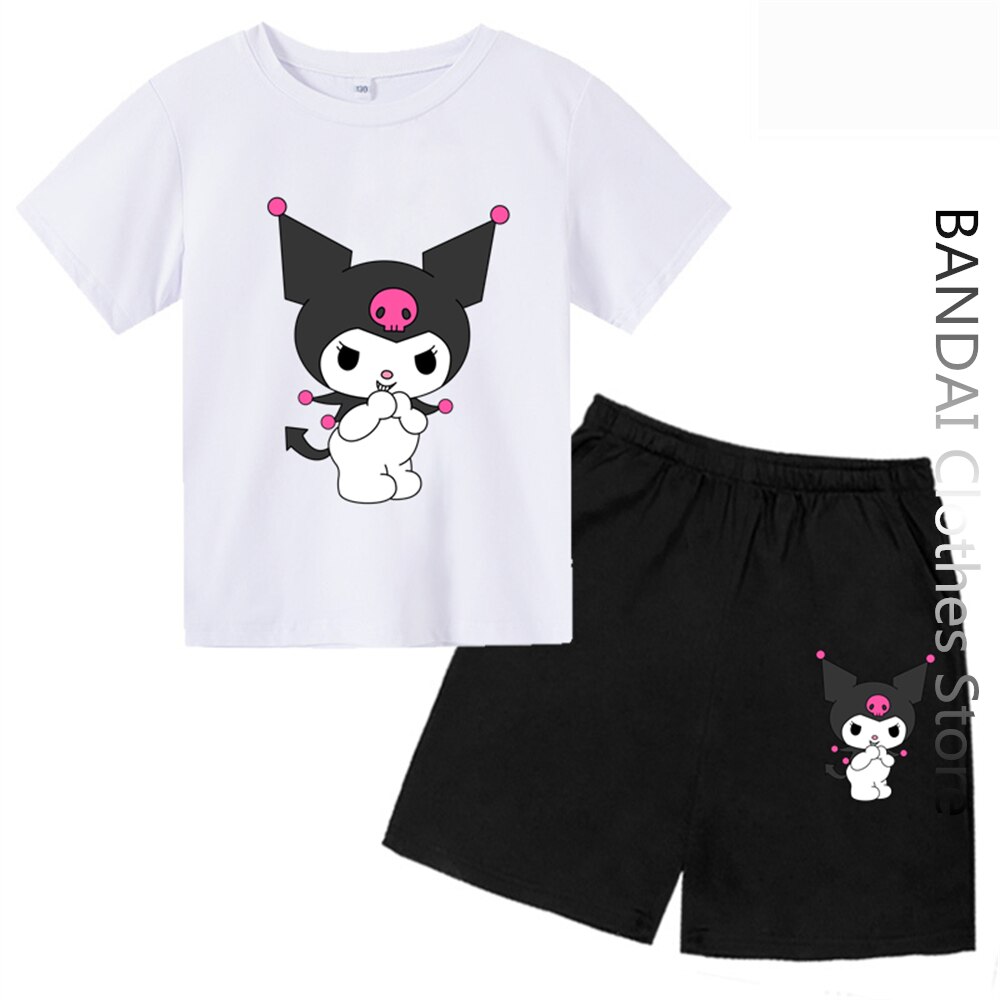 Kawaii Kuromi футболка для девочек Модная хлопковая одежда для мальчиков аниме мультфильм дети чистые мужчины женщины Hello футболка Китти комплекты повседневная одежда