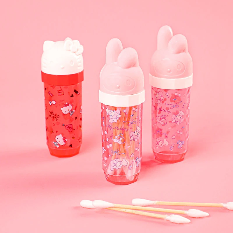 Kawaii Sanrio коробка для хранения Hello Kittys Mymelody аксессуары мультфильм милый портативный ватный тампон зубочистка пластиковая трубка подарок для девочек