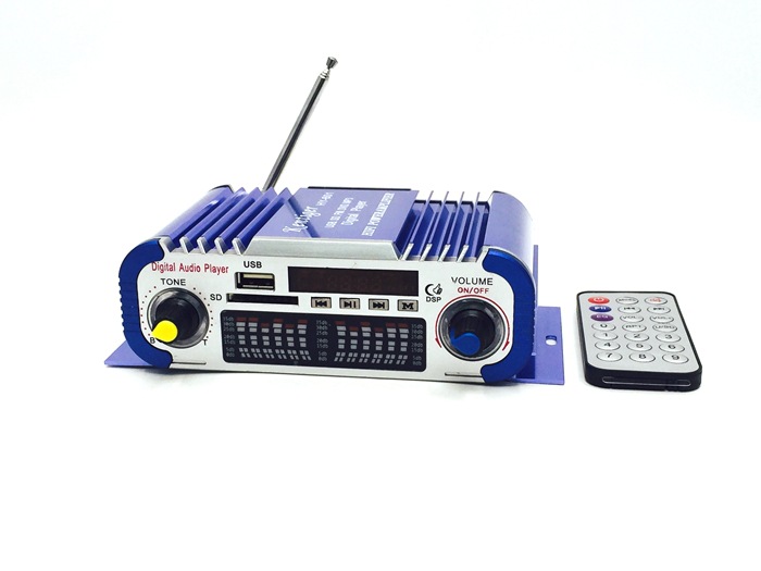 Этот профессиональный автомобильный усилитель мощности поддерживает USB, MP3, FM, SD, DVD. И он подходит для использования в автомобиле, мотоцикле, лодке или дома и легко устанавливается. Пульт дистанционного управления помогает Вам легче управлять им на большом расстоянии, поэтому вы можете управлять им и удобно слушать музыку.