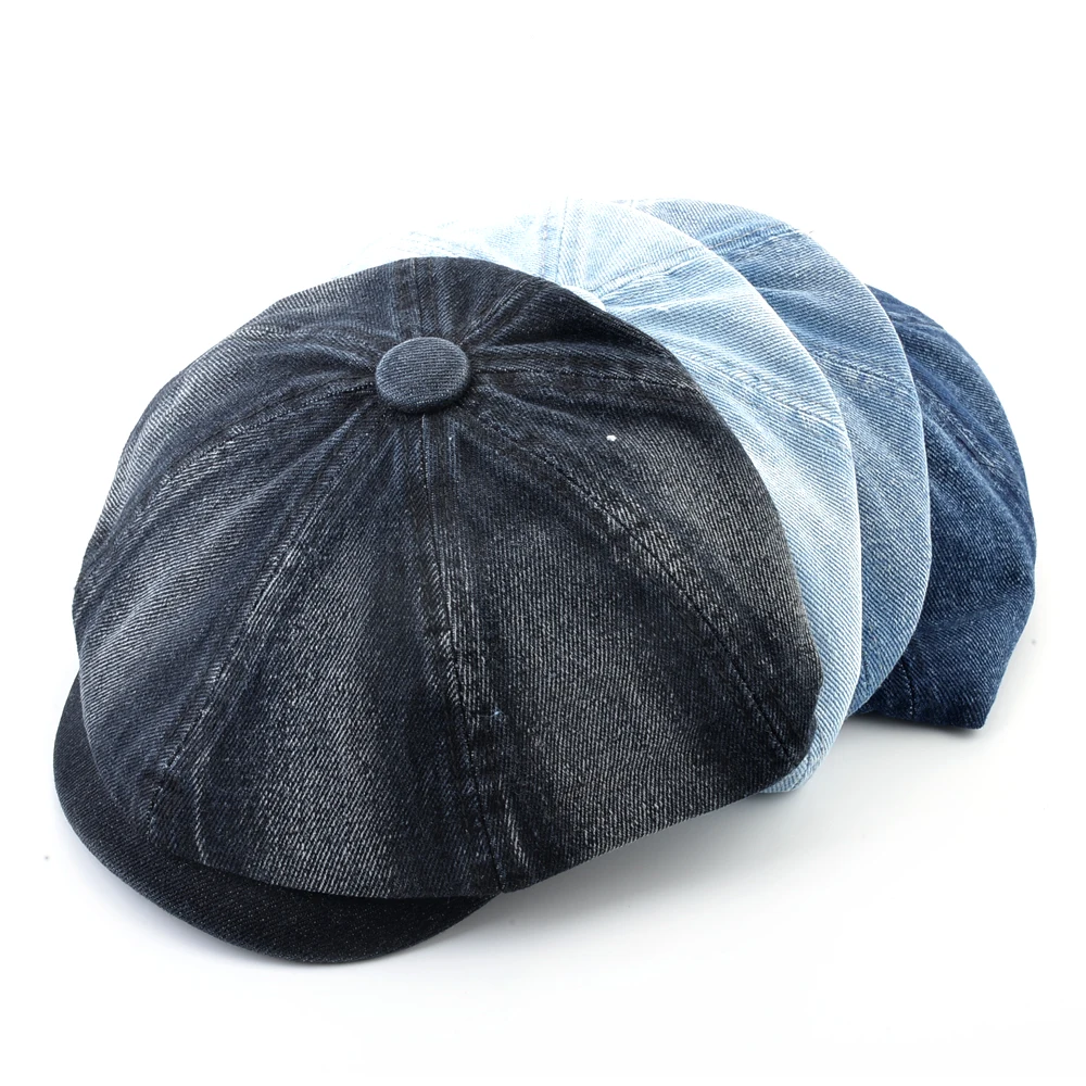 Мужской берет, новая модная кепка Newsboy, мужские уличные береты, Потертая джинсовая кепка, мужские повседневные винтажные шапки Boina