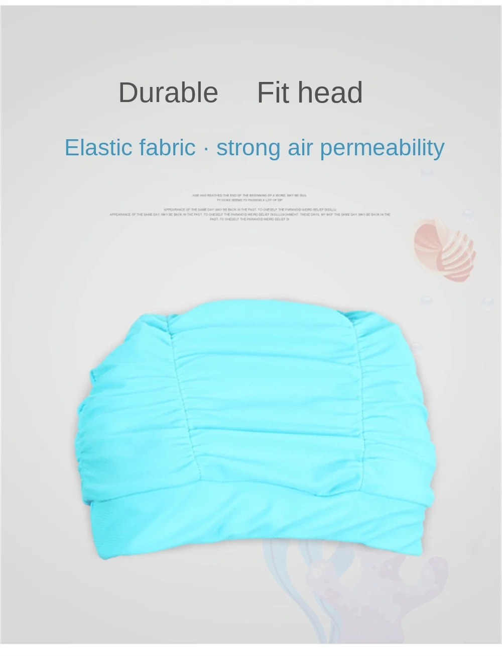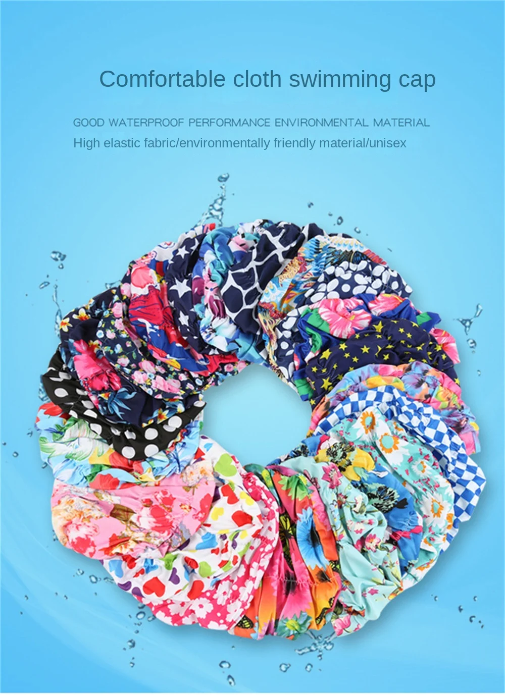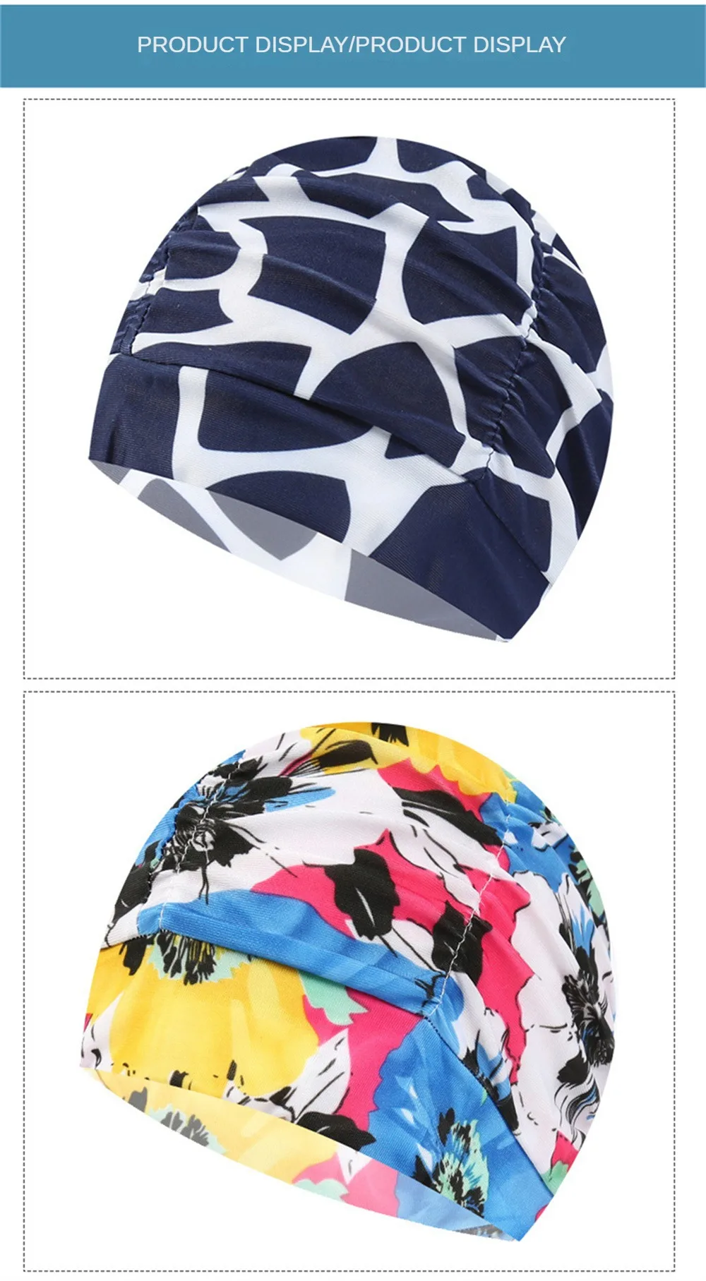 Женская шапочка для плавания Плиссированные цветы Ткань с принтом Плавательный бассейн Спорт Женские защитные длинные волосы Эластичные нейлоновые шапки для купания Шапка Тюрбан
