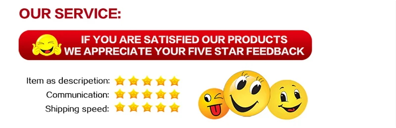 1. Ваше мнение очень важно для нас. Пожалуйста, уделите несколько секунд, чтобы оставить отличный отзыв, если вы удовлетворены нашими продуктами и услугами, спасибо!