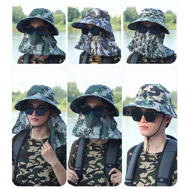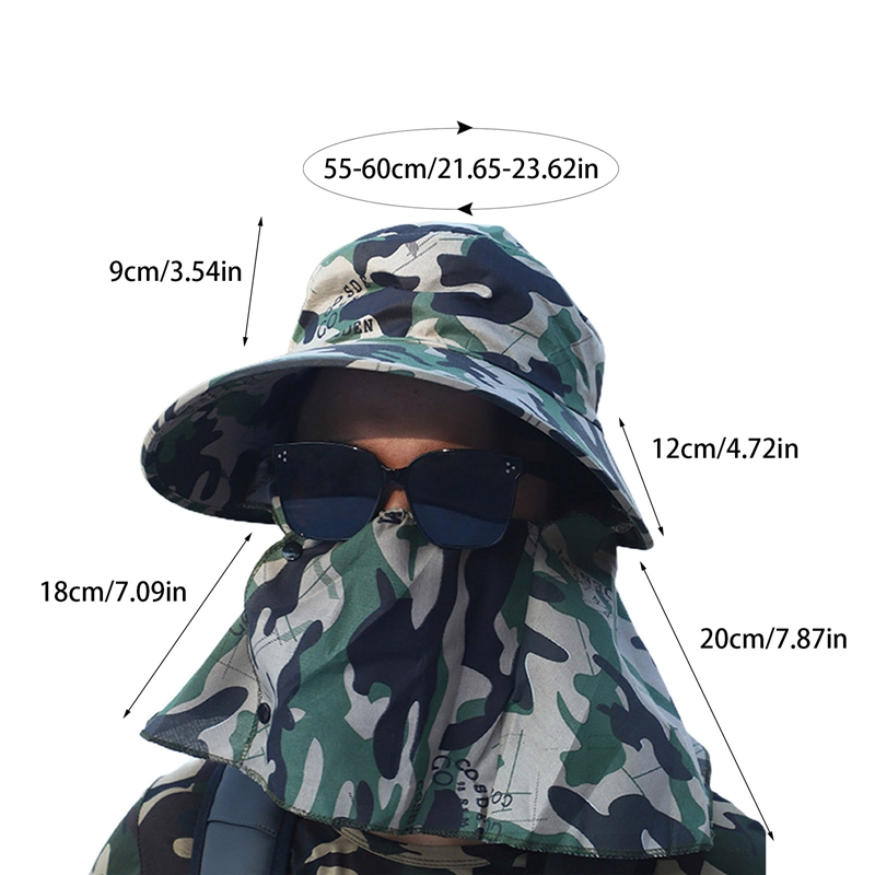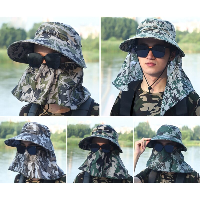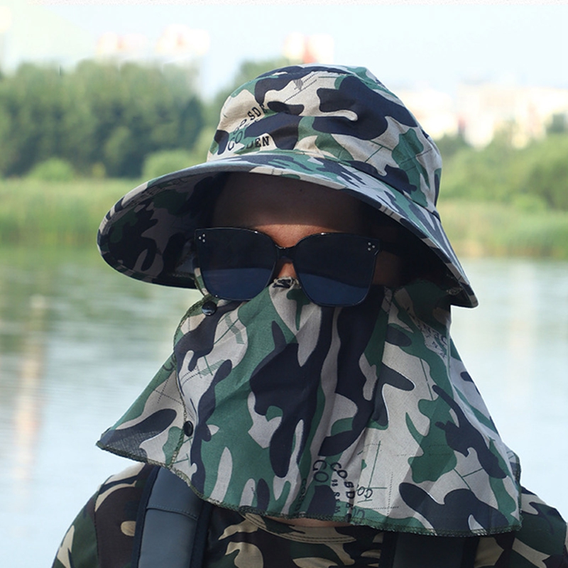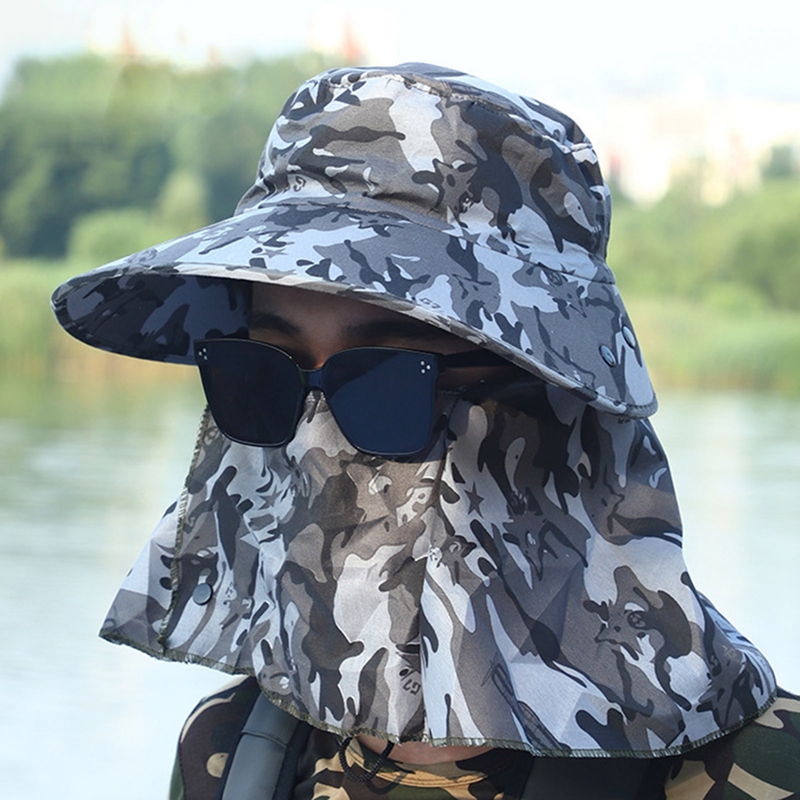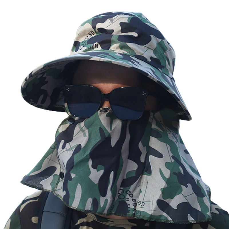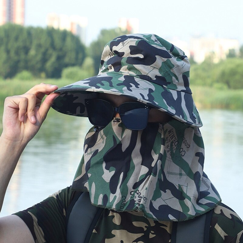 Кепка от солнца с широкими полями для мужчин и женщин, камуфляжная двойная защита для шеи, уличная водонепроницаемая, с козырьком, для рыбалки
