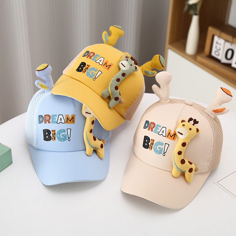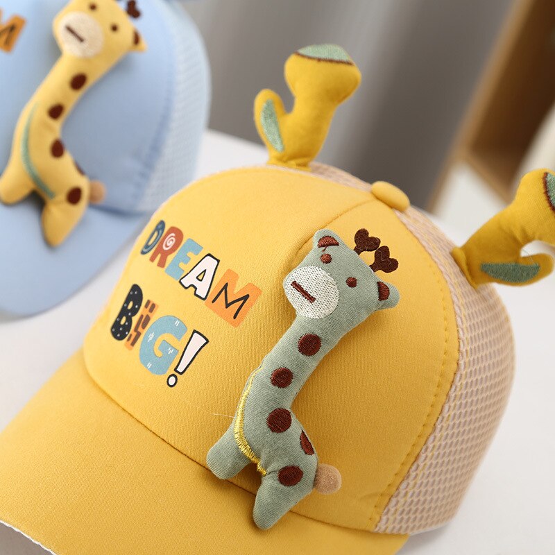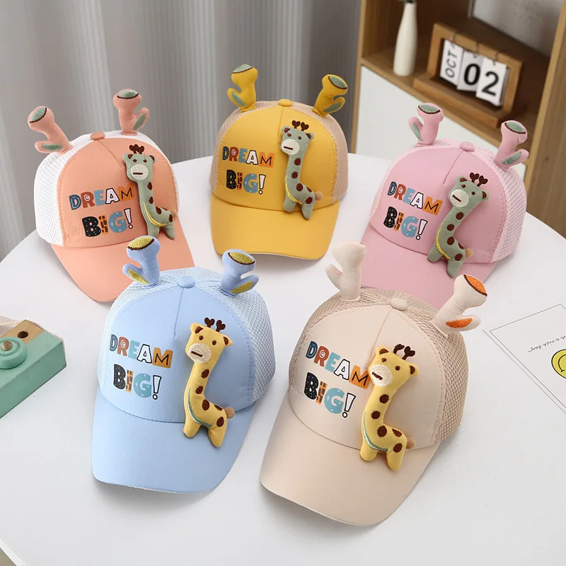 Кепка с ушками для мальчиков и девочек, детская бейсболка с мультяшным жирафом, уличный козырек, регулируемая сетчатая Кепка, аксессуары