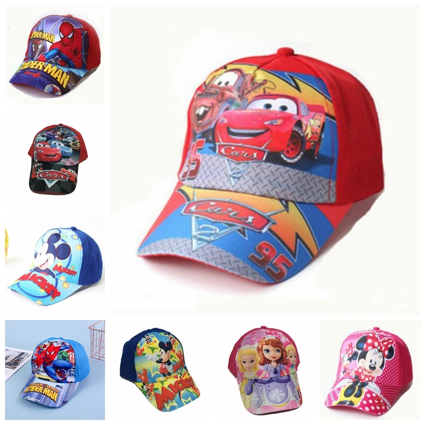 Children Cap Cartoon Marvel Spiderman Pixar Cars Lightning McQueen Print