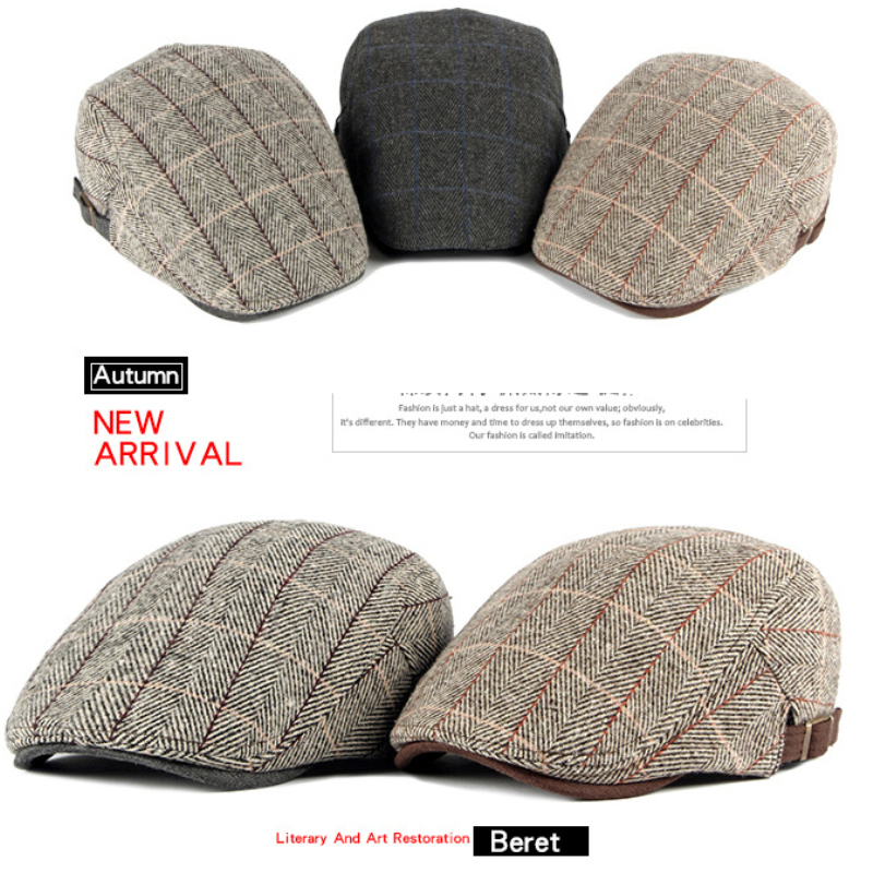Кепки в клетку для мужчин и женщин, твидовые береты в елочку, с плоским верхом, цвет черный
