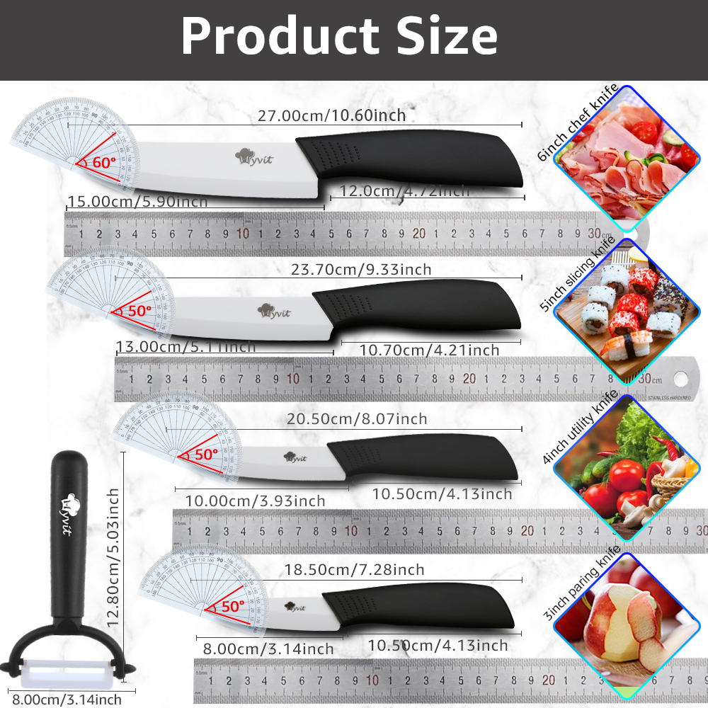 Керамические ножи 3 4 5 6 дюймов, нож шеф-повара для нарезки фруктов, лезвие из белого циркония, кухонные ножи с овощечисткой