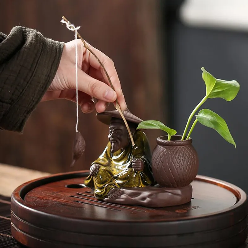 1 шт. Керамический чай украшение для домашних животных бутик чайный столик чайная фигурка украшения цветочный горшок фиолетовые керамические ремесла чайные аксессуары