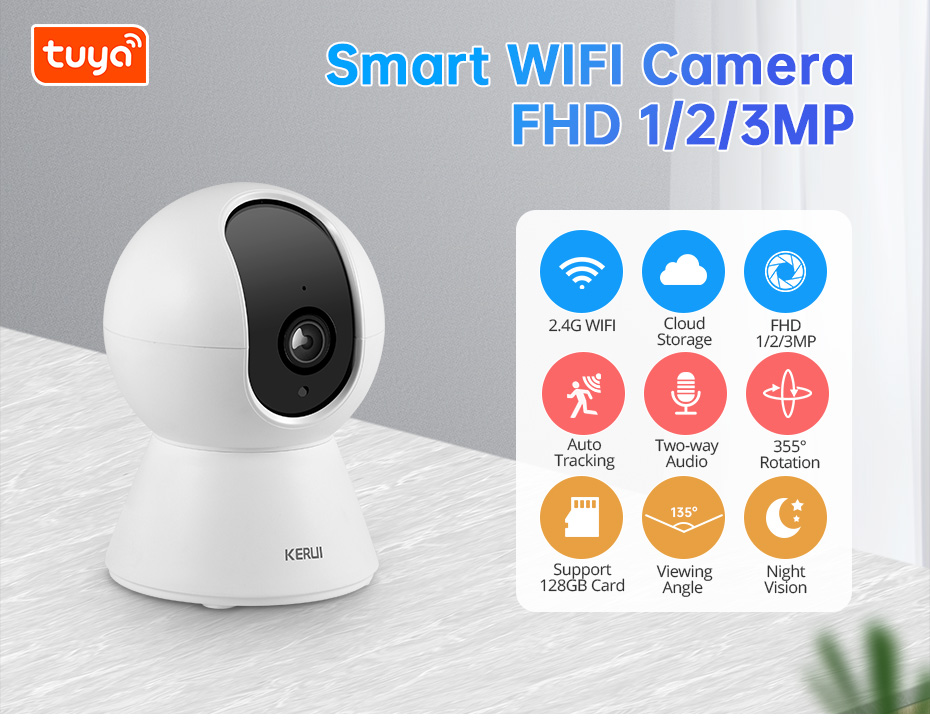KERUI Беспроводная 2MP Tuya Smart Mini WiFi IP-камера Внутренняя безопасность Дом CCTV Камера наблюдения Локальная доставка