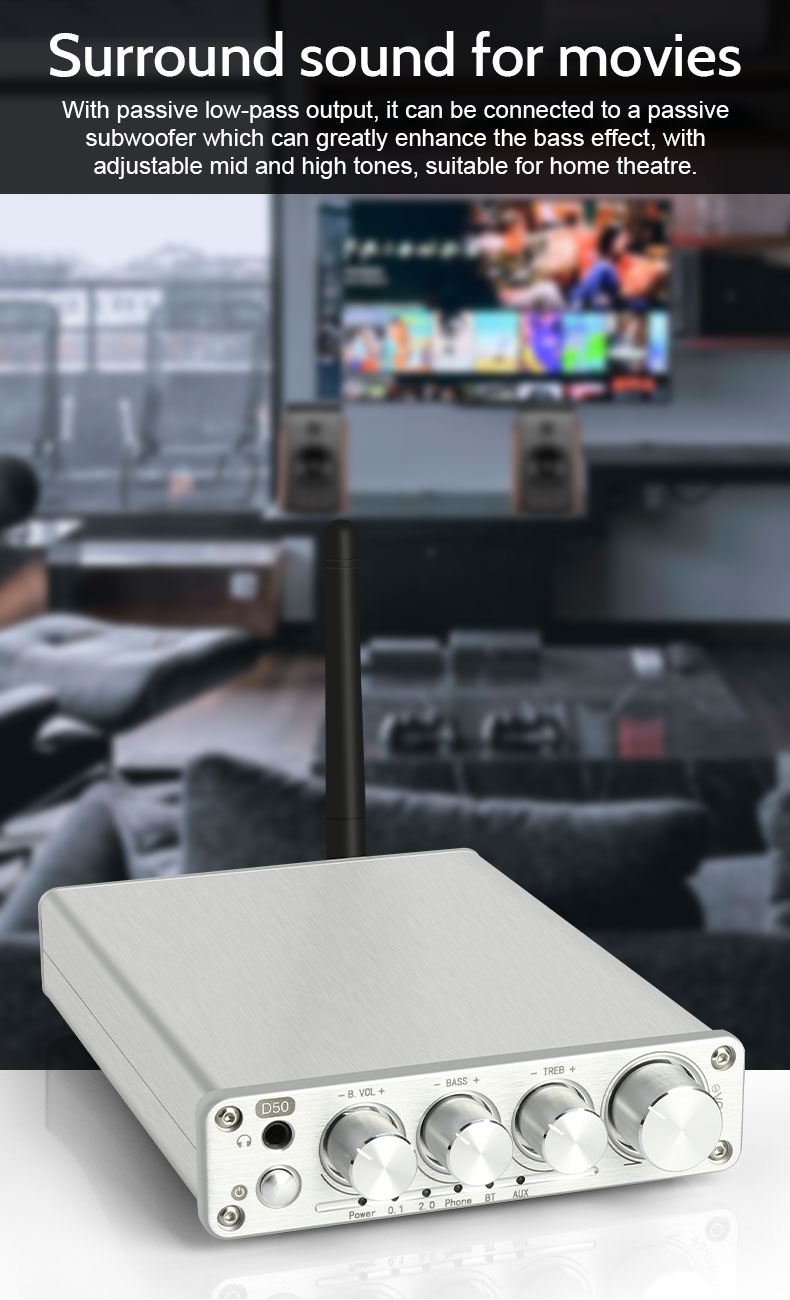 Выходная мощность: стерео 50 Вт X2,SUB 100 Вт 4 Ом