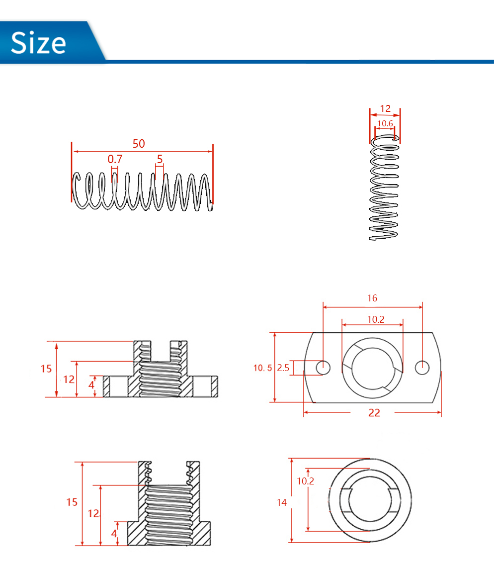Имя: T8 Анти-гайка с пружинным люфтом 2 мм 4 мм 8 мм