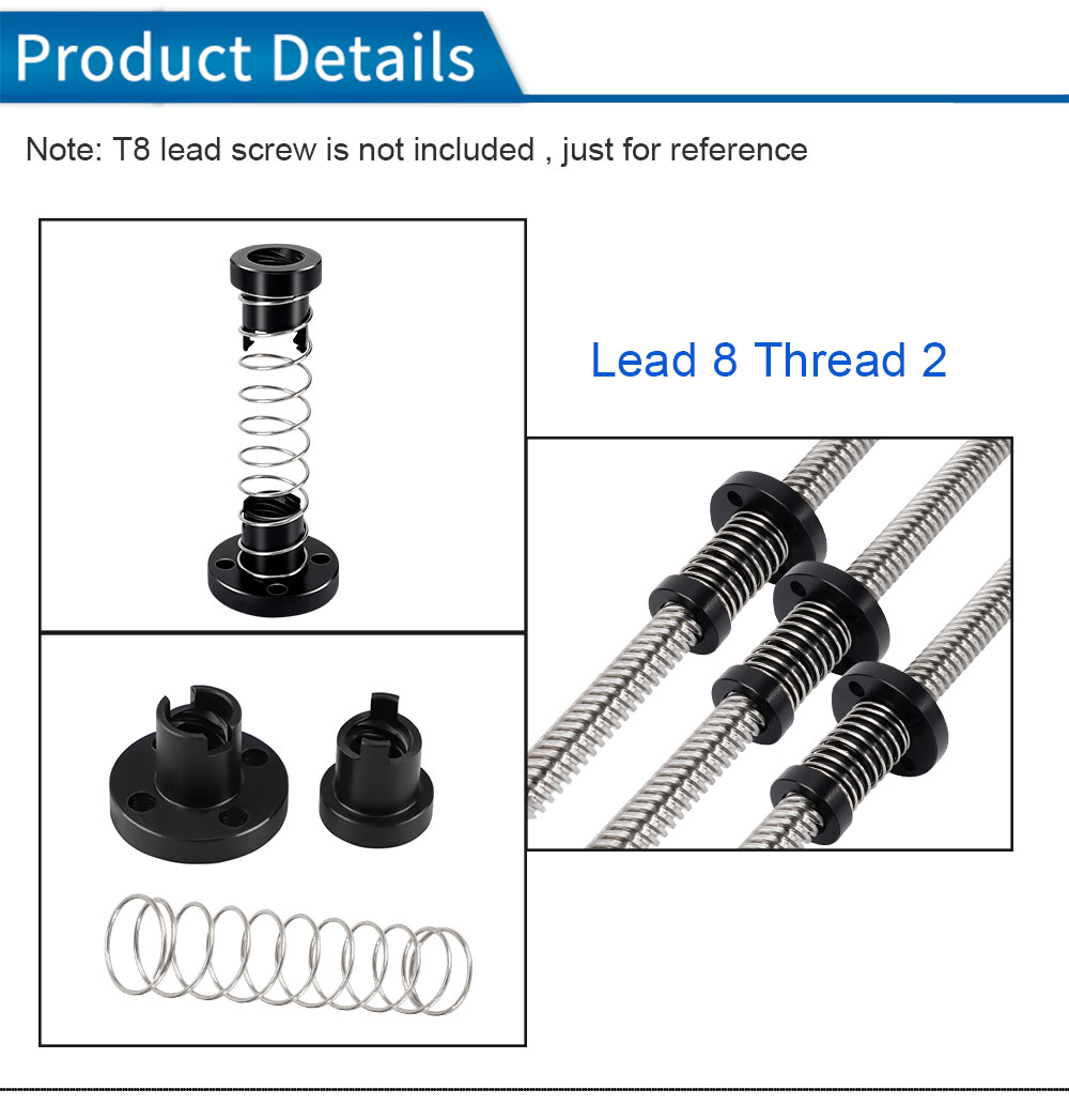 gap Spring Loaded DIY CNC Accessories 3D Printer T8 Anti Backlash Nuts